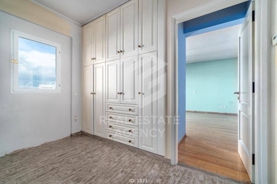 For sale maisonette of 124 sq.m. in Agios Dimitrios, in a very quiet neighborhood. The property is located on the 2nd and 3rd floor of a well-maintained apartment building. Entering the maisonette we see the large and bright living room where in the corner on the left there is a fireplace, which ends on the front veranda of the apartment building where we find the amazing view. Integrated in this space on our right is the kitchen that has a functional layout. The kitchen has access to a veranda on the side of the building. Next to the living room-kitchen on our right is a bathroom with a shower. Going up the internal wooden staircase, we are on the 3th floor where we find the three bedrooms and a large bathroom. In the first bright bedroom on our left we find a built-in wooden wardrobe and a comfortable bathroom. The remaining bedrooms also have built-in wardrobes and open onto the top floor balcony where they offer unlimited and magnificent views. Finally, it has a BBQ on the balcony. It is an ideal choice for a family.