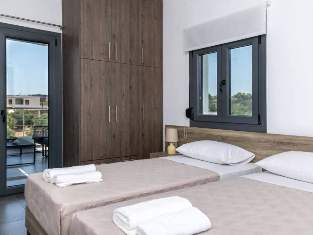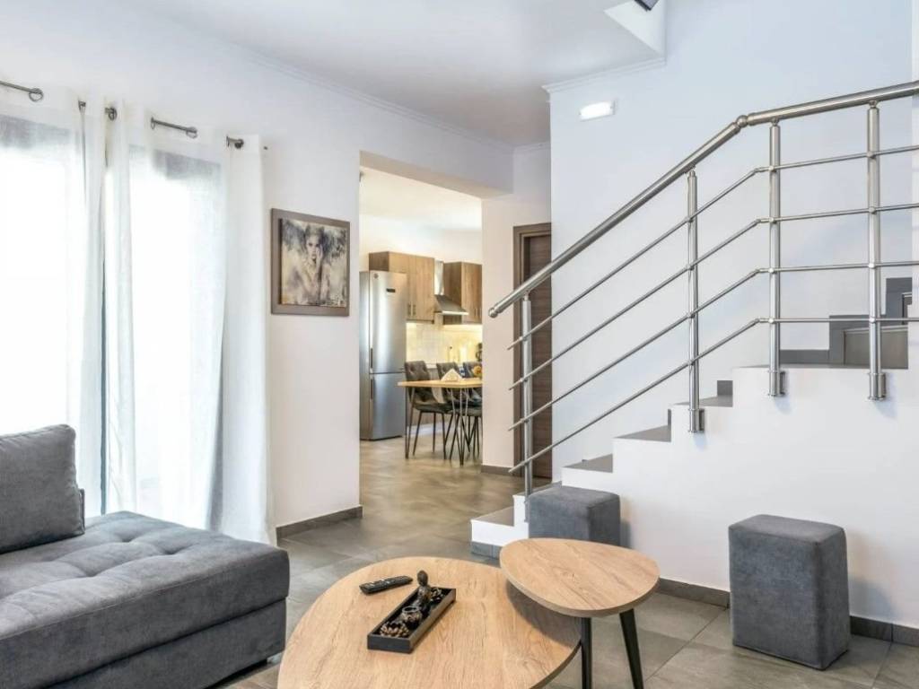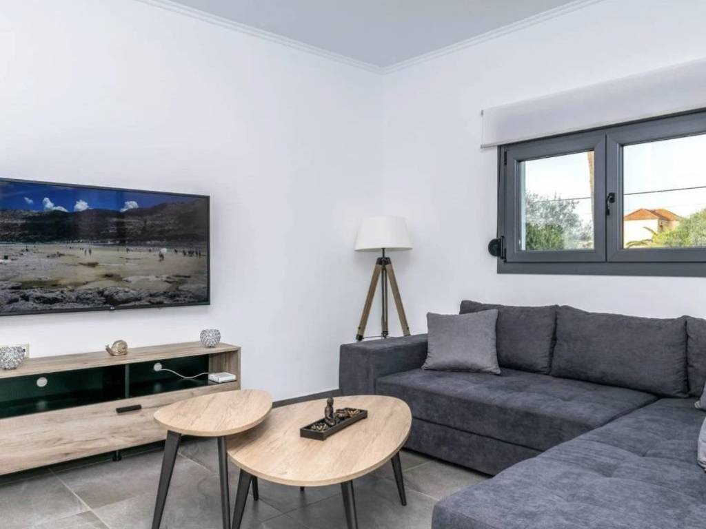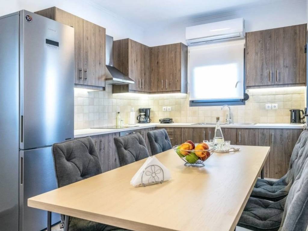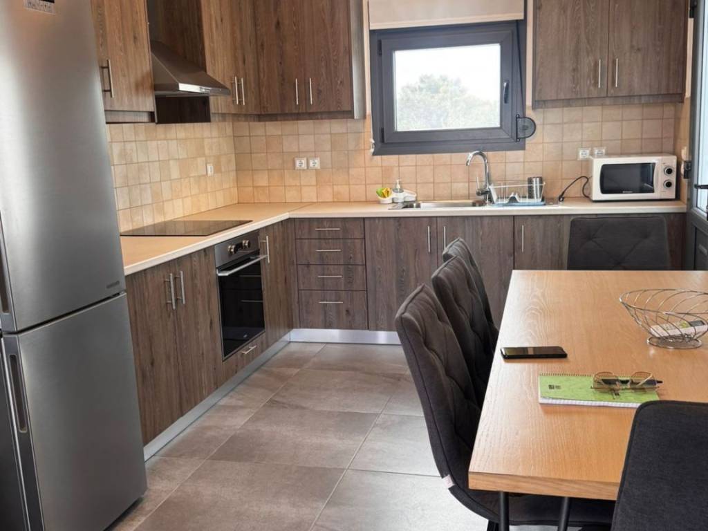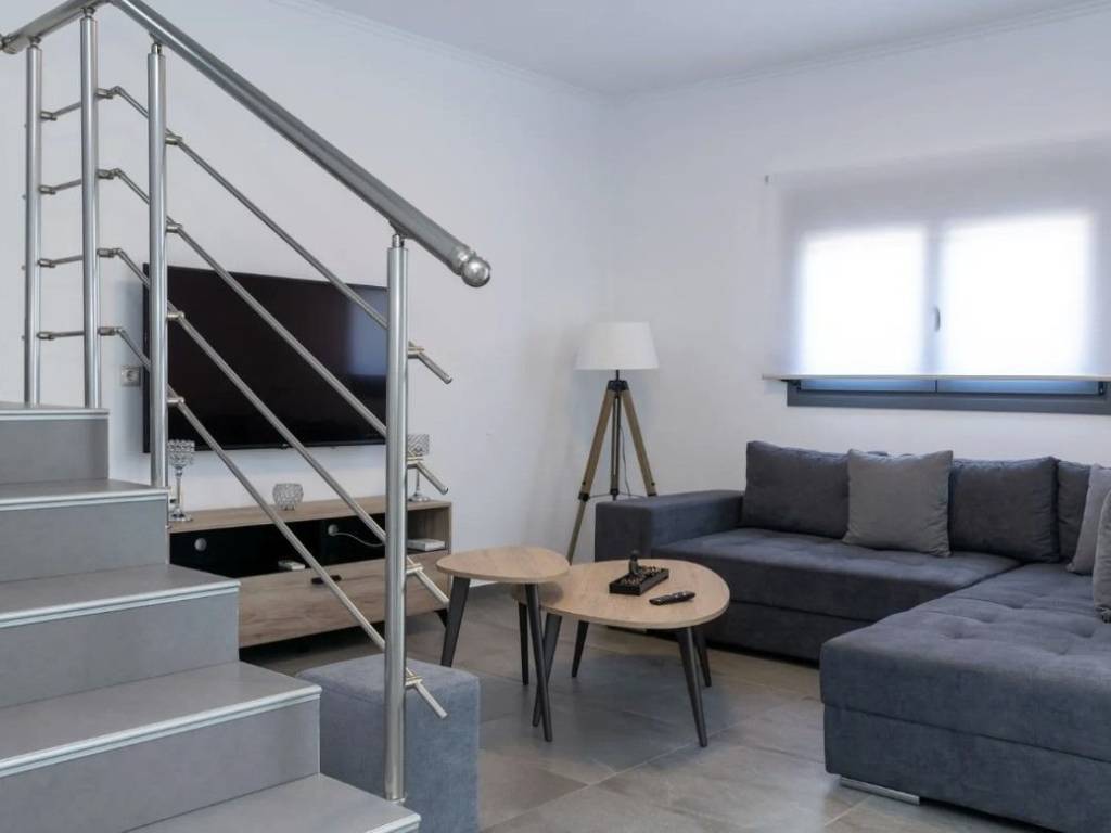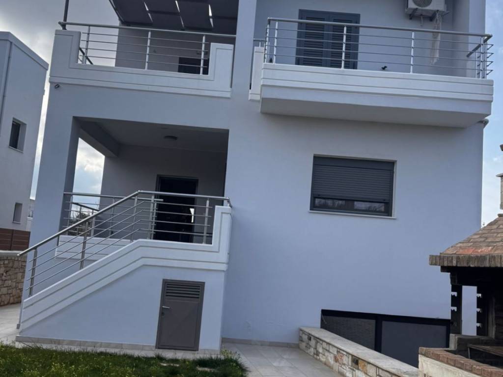 Ενοικιάζεται Πολυτελής Μονοκατοικία 120 τμ σε 2 επίπεδα, πλήρως επιπλωμένη και εξοπλισμένη. Η Μονοκατοικία αποτελείται από ισόγειο : όπου συναντάμε το σαλόνι, την κουζίνα, την τραπεζαρία, ένα υπνοδωμάτιο wc, μπαλκόνι . 1τος όροφος, 2 υπνοδωμάτια με μπαλκόνια και ένα μπάνιο. Διαθέτει: πανέμορφο κήπο με πισίνα και BBQ, σίτες, κλιματιστικά, ηλιακό θερμοσίφωνα, αντλία θερμότητα, αποθήκη, μία θέση υπογείου πάρκινγκ και μία ανοιχτή. Επίσης η κουζίνα διαθέτει όλες τις εντοιχισμένες απαραίτητες ηλεκτρικές συσκευές. Βρίσκεται σε εξαιρετικά ήσυχο σημείο,σε απόσταση 5 λεπτά από την παραλία, και 1 χιλιόμετρο από σούπερ μάρκετ, μινι μάρκετ, αγορά κλπ. Δίνεται για Μακροχρίνια μίσθωση μόνο. Δεκτά μικρόσωμα κατοικίδια. For rent Luxury Detached House 120 sq m on 2 levels, fully furnished and equipped. The Detached House consists of a ground floor: where we find the living room, the kitchen, the dining room, a bedroom wc, a balcony. 1st floor, 2 bedrooms with balconies and a bathroom. It has: a beautiful garden with a swimming pool and BBQ, screens, air conditioners, solar water heater, heat pump, storage room, one underground parking space and one open one. Also the kitchen has all the necessary built-in electrical appliances. It is located in an extremely quiet area, 5 minutes from the beach, and 1 kilometer from supermarkets, mini markets, markets, etc. Available for long-term rental only. Small pets allowed.