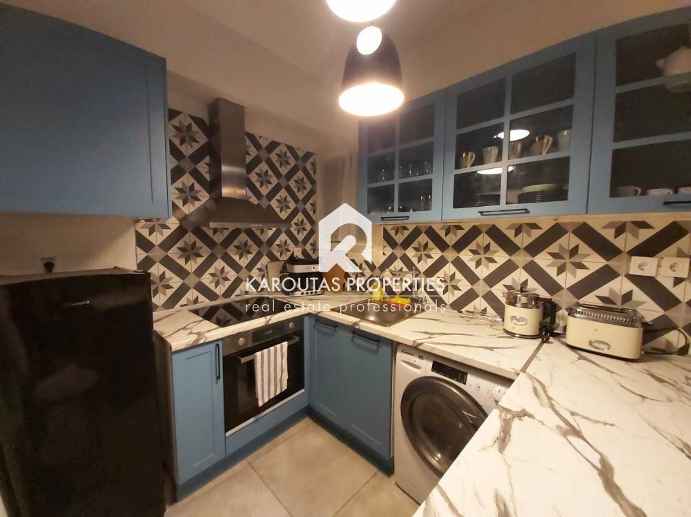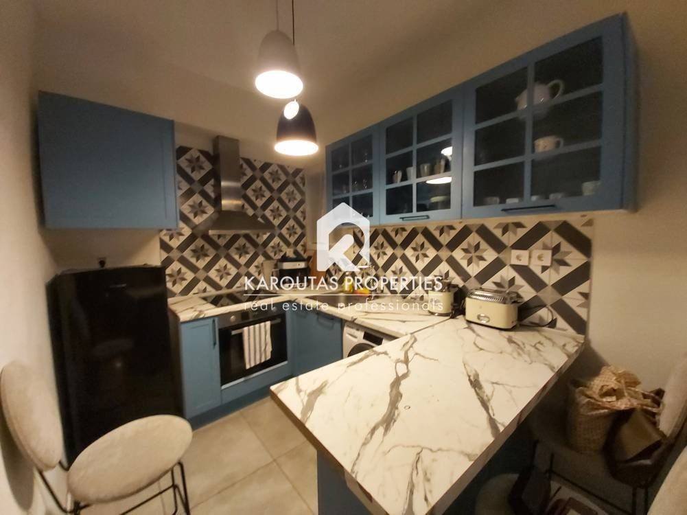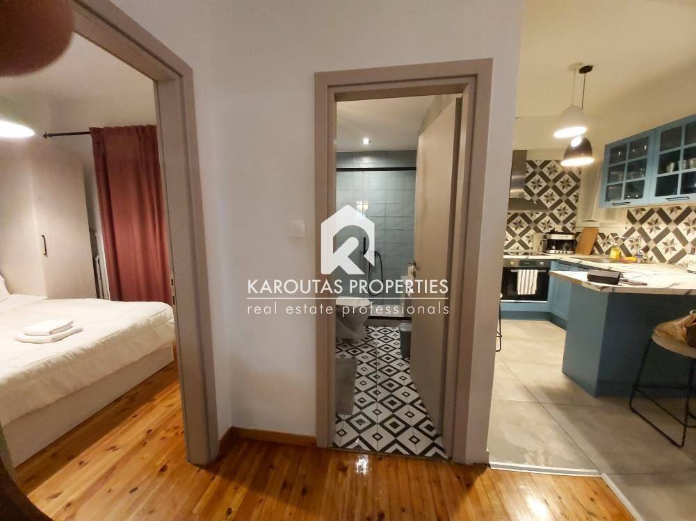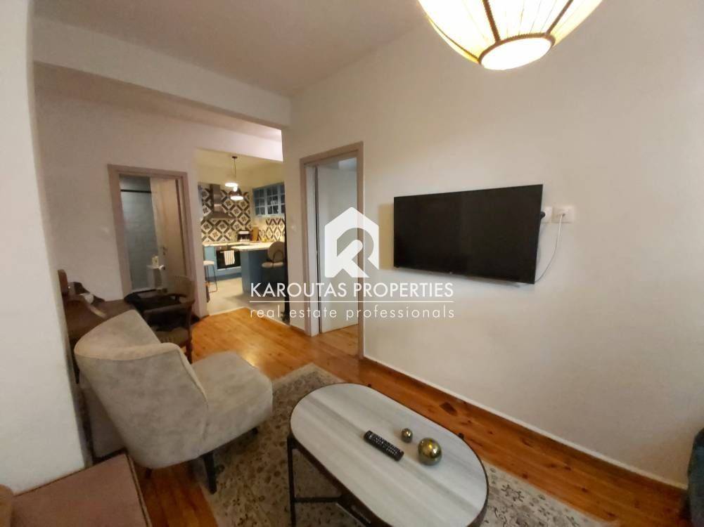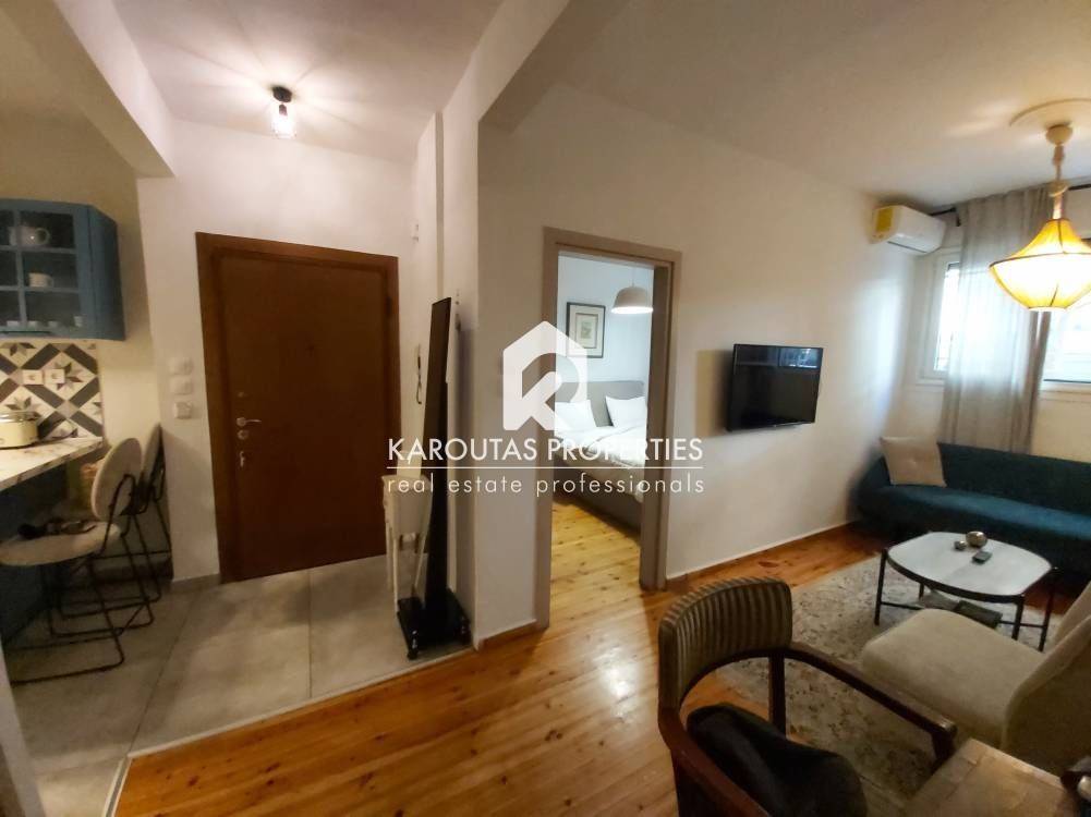 Fully renovated and furnished 54 sq.m. front-facing apartment, located in a semi-basement level in the heart of Thessaloniki.