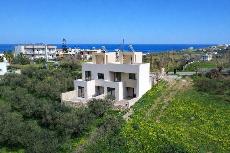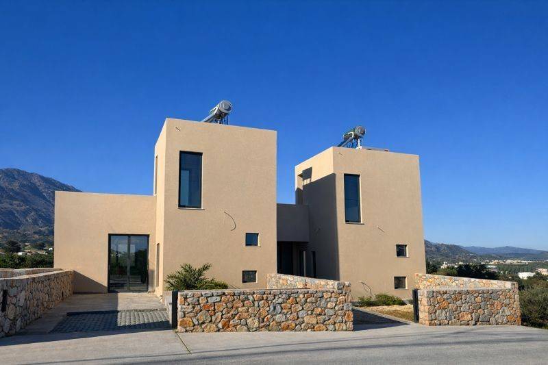 In the village of Kavros, just 1.2 km from the sandy beach, a newly built 2-level semi-detached house is for sale.