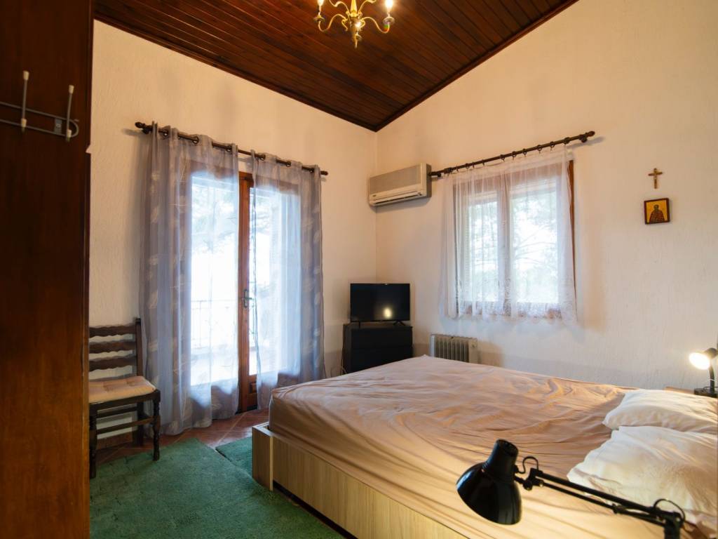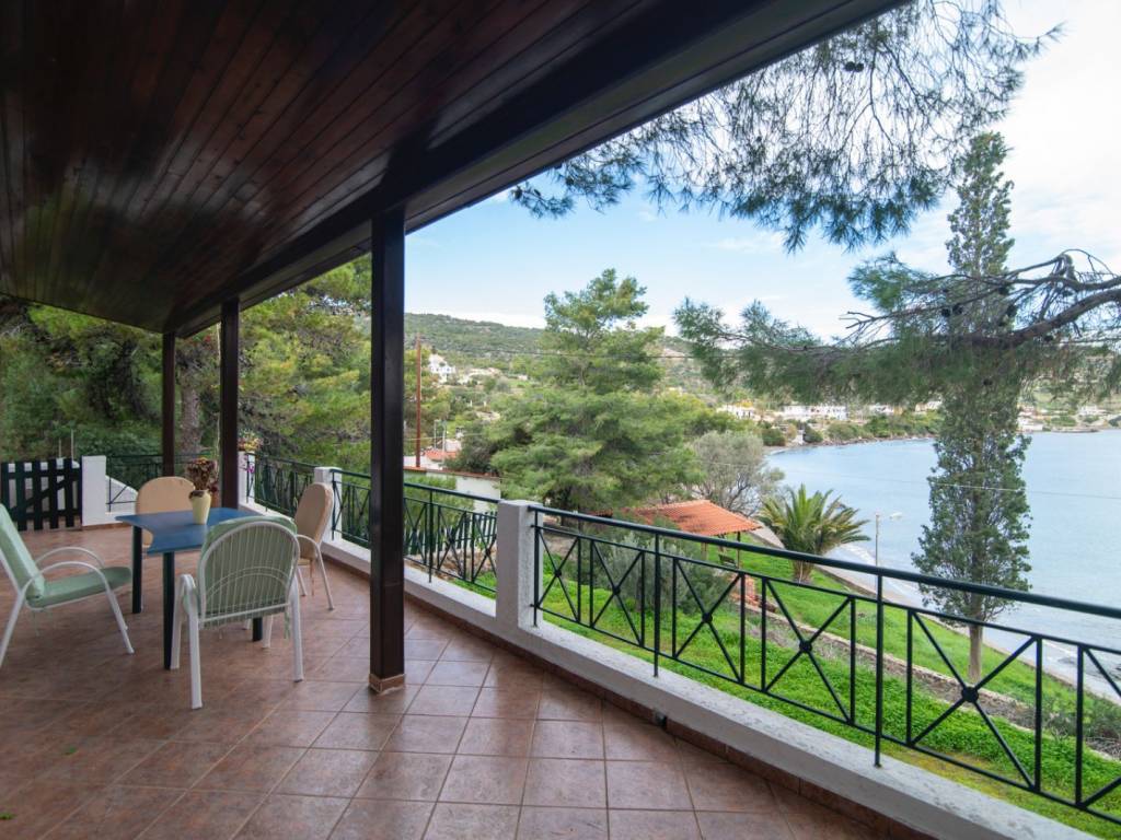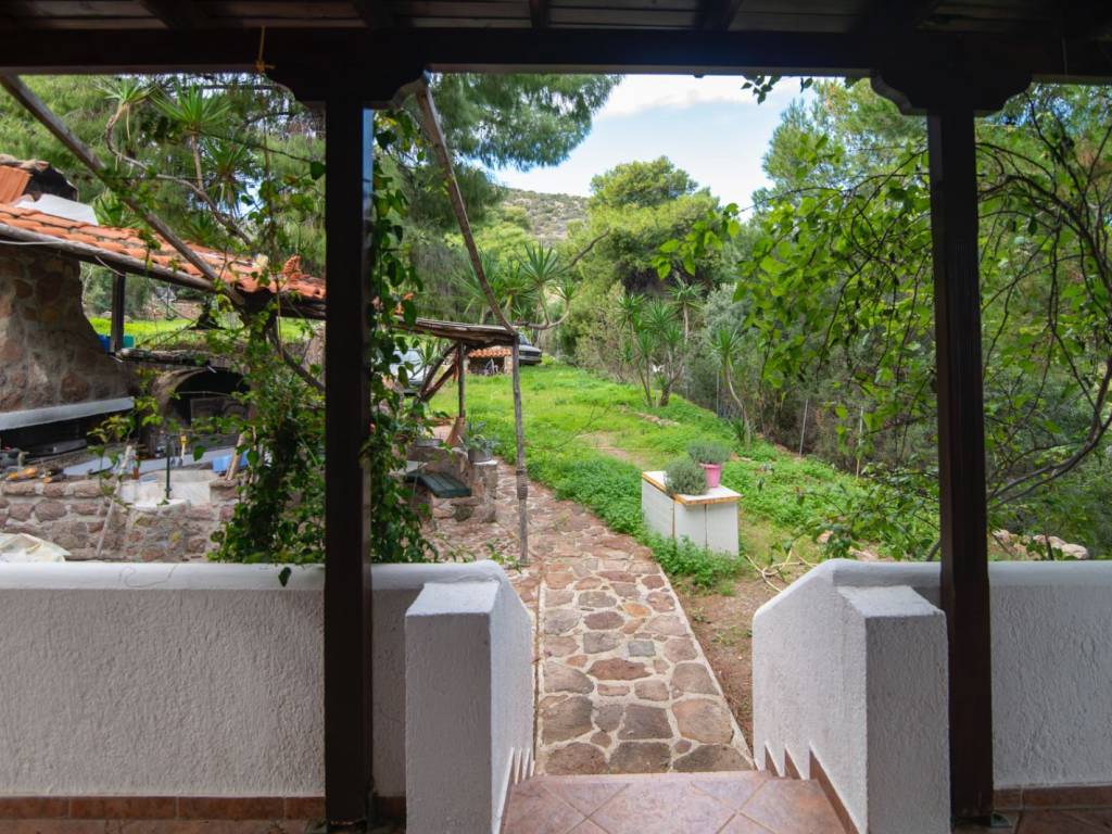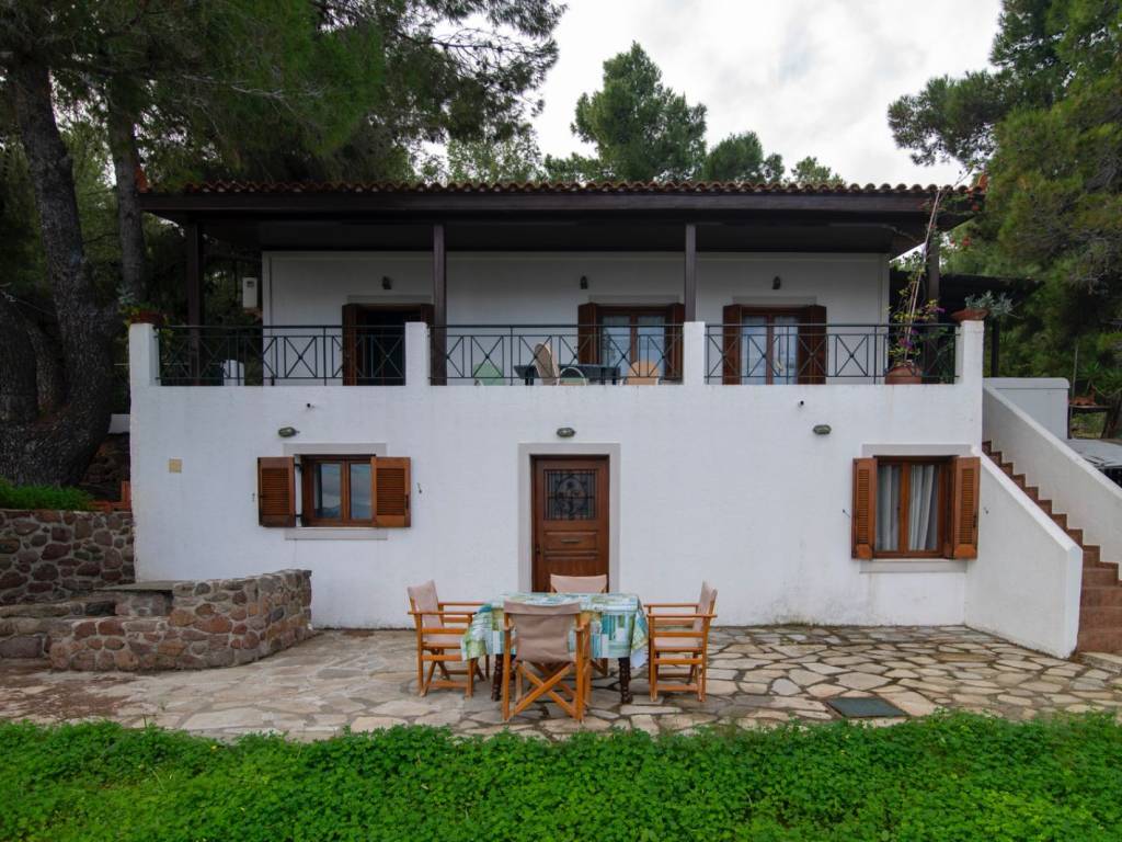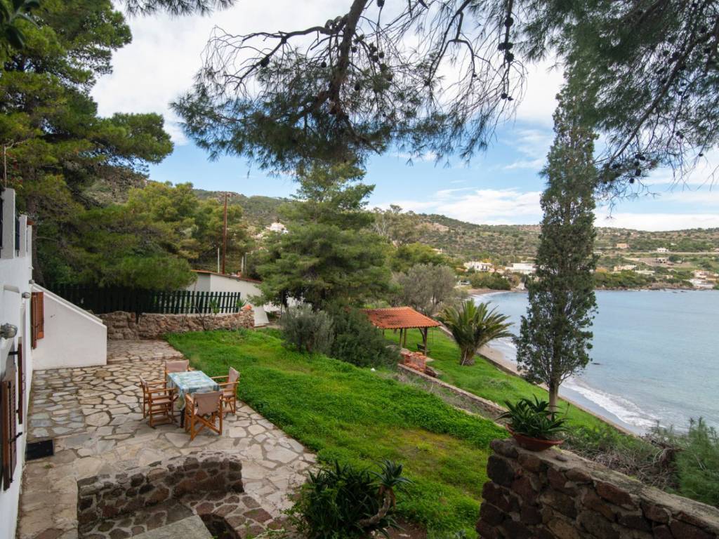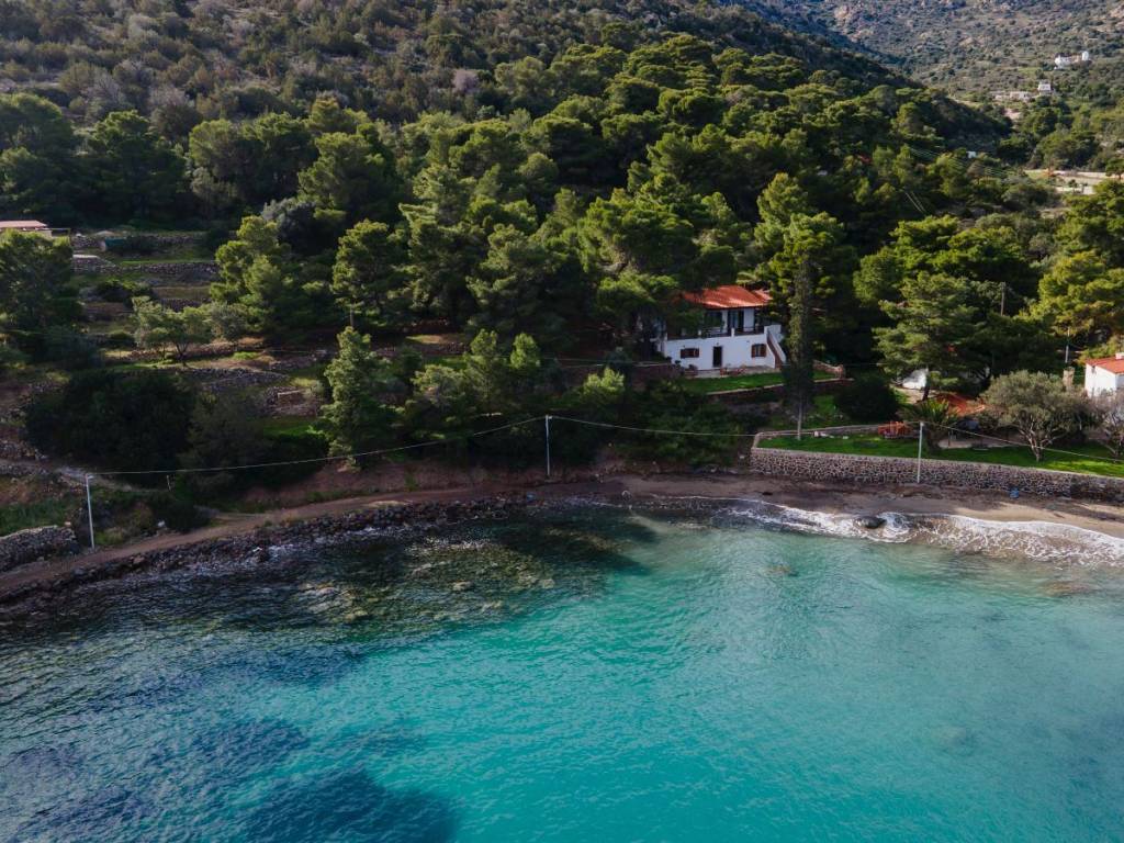 Located in one of the most privileged and peaceful areas of Aegina, in the region of Portes, this unique seaside property offers a rare opportunity for coastal living with direct access to a private beach and complete harmony with nature. The property is surrounded by pine trees, creating a sense of privacy and tranquility, while the unobstructed views of the sea, the mountains, and the lush greenery provide an ideal setting for relaxation. The outdoor area is carefully landscaped, featuring a beautiful garden with lawn, trees, an automatic irrigation system, and a traditional stone-built BBQ, perfect for hosting and enjoying memorable moments by the sea. The house is a detached residence with a total surface of 108 sq.m., situated on a 2400 sq.m. plot. It consists of two independent living units: - the main residence of 80 sq.m. - a second residence of 28 sq.m. In total, the property offers 3 bedrooms, 2 bathrooms, 2 kitchens, and 2 living rooms, making it ideal for family use, guest accommodation, or rental investment. Built in 1997, the property is in excellent condition. It is bright, fully furnished, detached on all sides, and maintains a charming traditional character. Additional features include autonomous electric heating, a solar water heater, wooden window frames with single glazing, tiled floors, and an energy efficiency certificate rated D. It also includes window screens, awnings, electrical appliances, and a storage room. Pets are allowed, and the neighborhood is quiet and welcoming. This is a remarkable seaside property, ideal as a holiday home, for short-term rentals, or as an investment opportunity. It perfectly combines a rare location, natural beauty, and functionality — a truly exceptional choice for those seeking quality living by the sea.