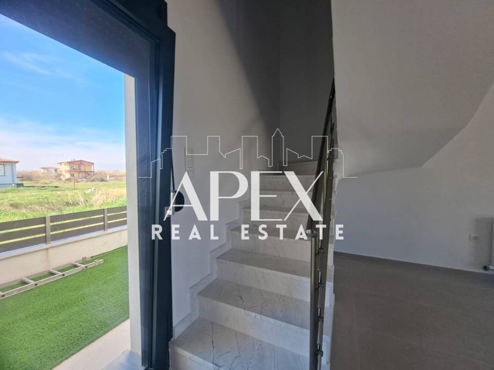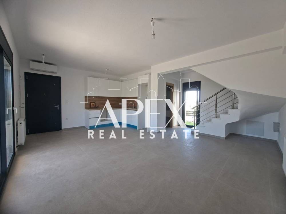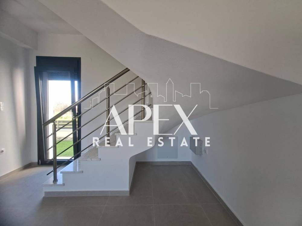 Luxuriously built maisonette of 90sq.m. 450m. from the beach, for sale in the area of Portaria Beach. It is developed on two levels, has three spacious bedrooms, a bright open plan kitchen with living room, three bathrooms and storage space. It has a terrace with sea view, a garden, air conditioning, preinstullation for heating with heat pump, an armored door and double glazing windows with insect screens. It is situated in an ideal location, close to supermarkets, shops, beach bars and restaurants.