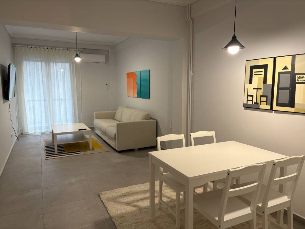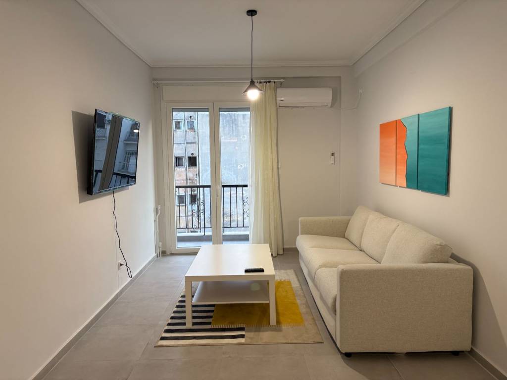 For sale: 60 sq.m. apartment on Acharnon Street, 5th floor (with elevator), fully renovated in 2026 and ready for immediate move-in or rental use. The renovation included plumbing, electrical installation, a brand-new kitchen, new bathroom fixtures/sanitary ware, new flooring, PVC windows/frames, and a security entrance door. Layout: 1 bedroom with walk-in wardrobe, spacious living room, kitchen, and bathroom. The apartment is delivered fully furnished with new IKEA furniture and comes with new appliances: refrigerator, washing machine, microwave oven, electric cooktop, espresso machine, toaster, vacuum cleaner, plus a 55” TV (still with the protective films). It also features air conditioning (A/C). Turn-key and ready to use: household essentials are included as well (bed linen sets, towels, and kitchen/serving items such as dishes/plates, etc.). Key advantages: bus stop right in front of the building, National Bank in the same building, and a Sklavenitis supermarket approximately 50 m away. Ideal as a turn-key property — offered exactly as shown in the photos.