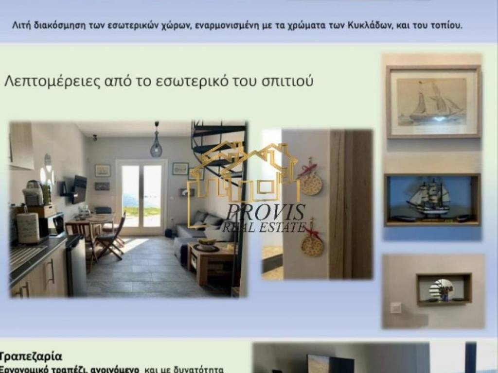 Mykonos, Ano Mera, Maisonette For Rent, 54 sq.m., Property Status: Amazing, Floor: Ground floor, 2 Level(s), 1 Bedrooms 1 Kitchen(s), 2 Bathroom(s), Heating: Personal, View: Sea view, Building Year: 2024, Energy Certificate: A, 1 parking(s), Type of door frames: Aluminum, Features: Internet Line, Electric Appliances, Internal Staircase, Double Glazed Windows, Balconies, Furnished, Roadside, Bright, AirConditioning, Solar water system, New Construction, Painted, Price: 12.000€. PROVIS REAL ESTATE ΕΕ, Tel: 2114016161, email: mesitikoprovis@gmail.com