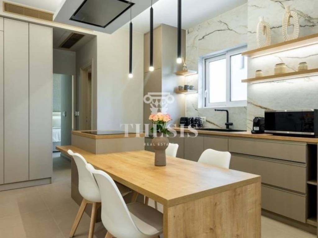 Property code: 833670 - Kato Glyfada FOR RENT renovated, furnished and bright apartment, 50 sq.m. in one of the quietest streets of Glyfada. The open-plan interiors - the fully equipped kitchen, the living room - the large balcony, the personalized details, the separate bedroom ensure practicality and high aesthetics, with views of the light and the city in all directions. A few minutes from the center of Glyfada, with access to gyms, swimming pool, cinema, branded stores, grocery stores, small shops and lounges, while cafes and restaurants are everywhere. With the tram lines right below, the coastal areas up to Voula, the center of Athens and the port of Piraeus are easily accessible. Also, access to the International Airport by the X 96 bus. Modern and luxurious living in the heart of the Athenian Riviera - Price: €1,400
