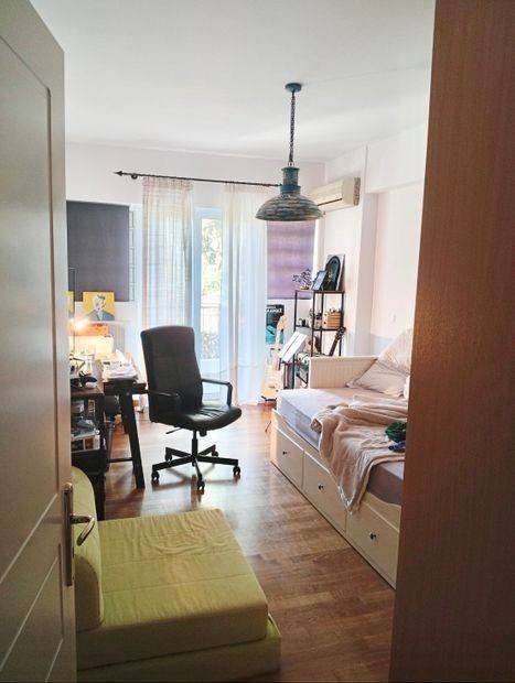 Εξαιρετικό διαμέρισμα υπερυψωμένου ισογείου, σε ήσυχη περιοχή κοντά σε σχολεία, συγκοινωνίες και σε στάση Προαστιακού. Αποτελείται από 1 φωτεινότατο σαλόνι με τζάκι, άνετη κουζίνα, 2 ευάερα υπνοδωμάτια, 1 μπάνιο και 1 wc. Διαθέτει κουφώματα αλουμινίου με διπλά τζάμια και σίτες, βεράντες με τέντες, 1 θέση υπογείου πάρκινγκ και 1 αποθήκη. Από καροικίδια δεκτές μόνο γάτες. Τηλ επικοινωνίας 6946879906