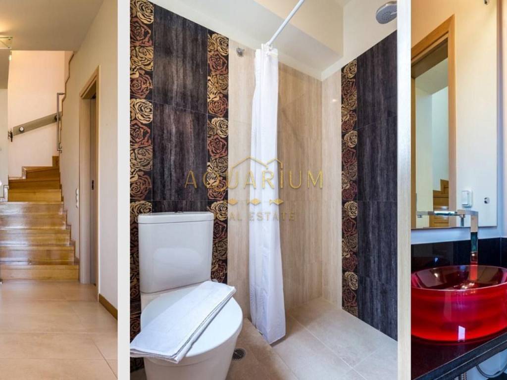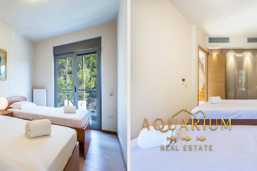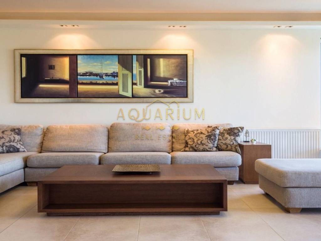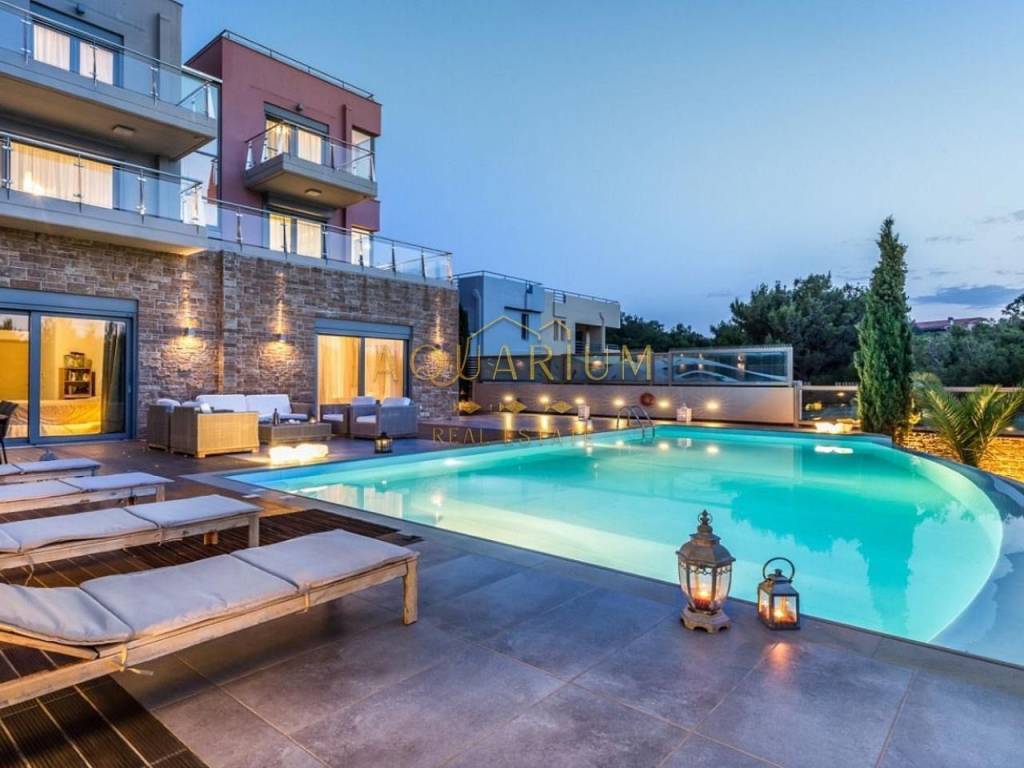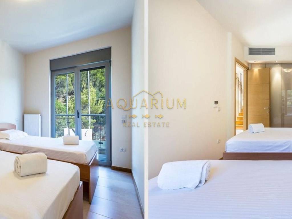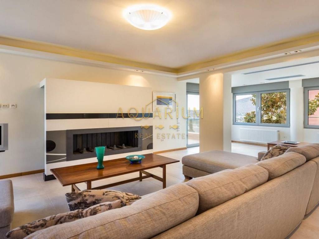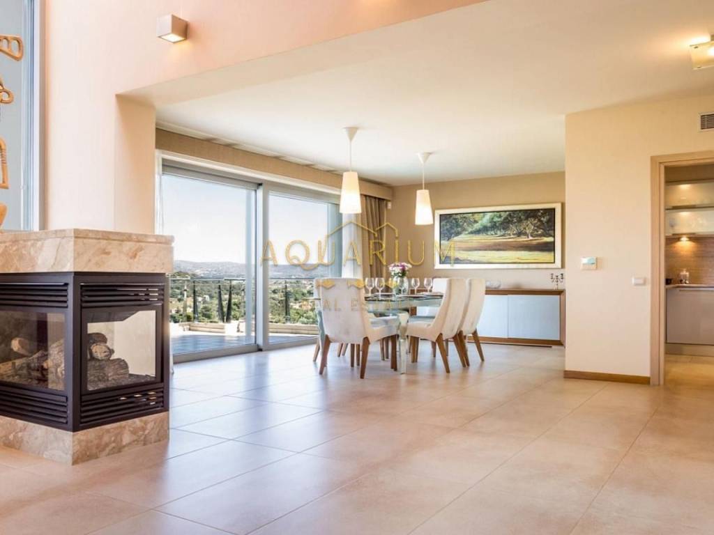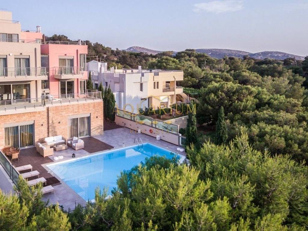 ANAVYSSOS - Villa FOR SALE. The Villa has two Maisonettes and an apartment. Maisonette 212 m2 Maisonette 213 m2 Apartment 145 m2 Maisonette 212 m2 Second Level Three-sided energy efficient gas fireplace Balconies with unobstructed view of Anavyssos Two sided skyline terrace, with patio garden, kitchen, wardrobe and one guest WC with shower 2 master-bedrooms with antechamber (with infrastructure for a third one) open closet, WC with bath and hydromassage). Upper level for washer and dryer and exit to double terraces for parties and dinners with sea views. Μaisonette 213m2 Third Level Big Living Room and Fireplace Big veranda with a view to a hill with pine trees Two sided skyline, terrace, kitchen 3 bedrooms (1 master bedroom with bath fitted with hydro massage) και another WC with two faucets and two showers with a forest view. Upper level for washer and dryer and exit to double terraces for parties and dinners with sea views. Ground Level Apartment of 145 m2 Direct access to gardens. Pool with lounge and sea bathing space, lit floor with optic fibers in star pattern Big living room with fireplace and open kitchen, 2 en-suite bedrooms, and guest WC in living room Storage space, boiler, elevator access, Granite floors Steam bath for six persons, showers and gym space. Other Characteristics: Date Built: 2009 Indoor garage for 3 cars. Property Size: 823 m2 Autonomous Heating (petrol) & central air condition for each residence. Continuous foundations και and anti-seismic protection category (2) one scale up from that of Athens. Dierre Electronic Security Doors. Energy Class Α+ Private warehouse space for each apartment. Mosquito Meshes and Electric shutters everywhere. A lot of windows, big balconies, terraces, Pool with overflow feature on one side, Alarm with color cameras throughout, Schindler Elevator for 6 people, ΕΤΕΜ Aluminum frames and rolls, Ethernet, NOVA Satellite Dish, CUMMINGS 105 ΚWA, automatic backup generator connected with fire extinguishing system with WILO pumps, TILO Norwegian Steam bath for 6 people with showers