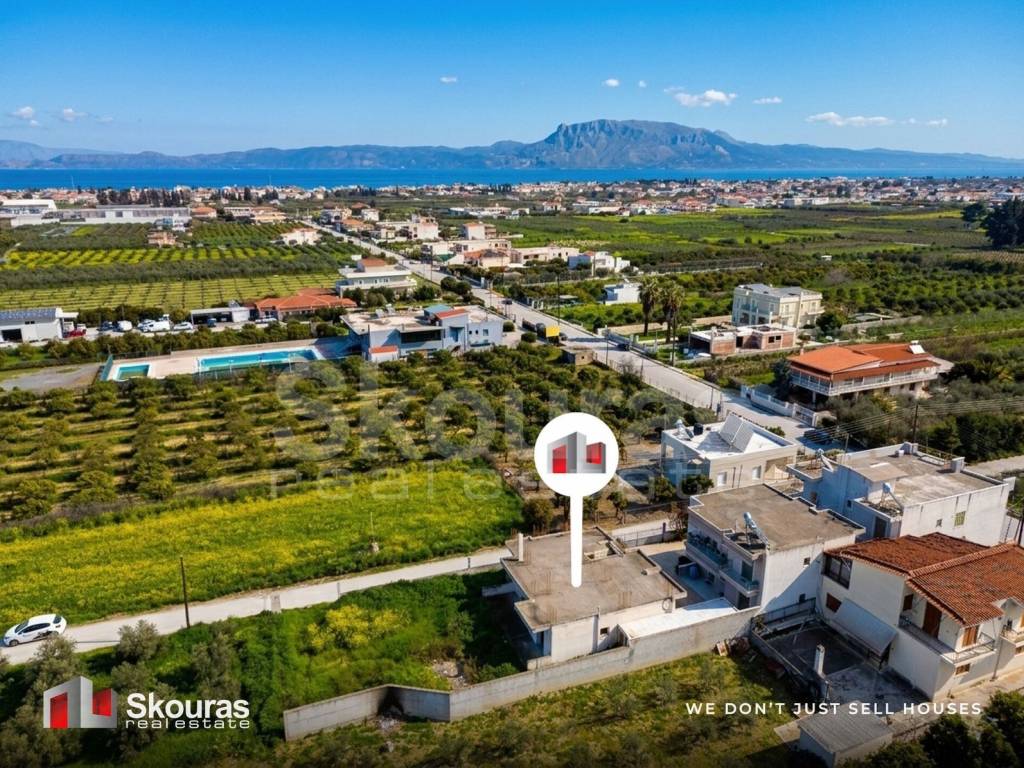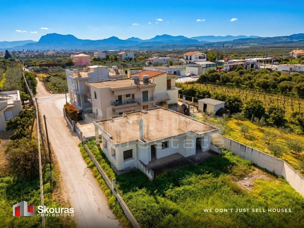 In a quiet and lush green area of Vochas, Vrachati, Corinthia, a ground-floor unfinished detached house with a total surface of 120 sq.m. is offered for sale, set on a 1,200 sq.m. plot with approximately 50 olive trees and additional building capacity up to 400 sq.m., thanks to the right to construct a second floor. The property is located just 1,500 meters from the coastline and 2 km from the center of Vrachati. The residence, built in 2010, consists of three bedrooms, a spacious living room with fireplace, a kitchen, and one bathroom. It also features an outdoor parking space and an internal courtyard. The property is front-facing, bright, and enjoys unobstructed views of the mountains, greenery, and open surroundings, offering a sense of privacy and tranquility. The large plot with olive trees provides generous outdoor areas and the potential to create a garden or outdoor leisure spaces. The additional building allowance for a second floor, with a total development potential of approximately 400 sq.m., significantly enhances the investment value of the property. The location perfectly combines natural serenity with easy access to everyday amenities and infrastructure, as it is close to public transport, schools, church, supermarkets, retail shops, and dining options. It is approximately 12 km from the center of Corinth, 7 km from Mare West — the largest shopping center in the area — and about 125 km from Athens International Airport. The unfinished condition offers the new owner the unique opportunity to complete and customize the residence according to personal needs and aesthetic preferences, making it an ideal choice for a permanent residence, holiday home, or investment property near the sea. Skouras Real Estate #1 Greek Real Estate Company in the Peloponnese 4 Offices: Nafplio | Kalamata | Corinth | Porto Heli 3000+ Properties | 18+ Years of Experience | Support in 5 Languages Marketing & Website - European Property Awards 2020 Marketing Techniques & Development - EPPA 2022 & 2024 Call Center: +30 27520 29529 Mobile: +30 6973670724 Email: diam.skourasre@gmail.com Property Consultant: Theodoros Diamantopoulos Discover more than 3,000 properties at: www.skourasrealestate.gr Note: Property information is based on details provided by the owners. Skouras Real Estate bears no responsibility for possible inaccuracies. Identification (ID or passport) is required for property viewings. Map locations are approximate.