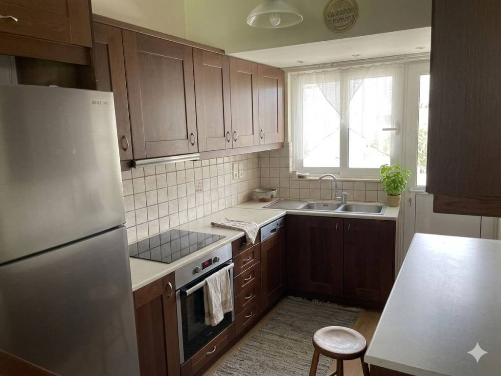 For rent: a 108 sq.m. dual-aspect apartment on the 1st floor, located in Peristeri – Chrysoupoli area, close to public transport and supermarkets. Built in 2005, the property is in very good condition. It consists of three bedrooms, one bathroom, one WC, a kitchen and a spacious living room, offering a comfortable and practical layout ideal for a family or students sharing. The west orientation and dual-aspect design provide natural light and good ventilation, making the apartment bright, airy and sunlit, with pleasant urban views. It features autonomous oil heating, a solar water heater, aluminum double-glazed windows and tile and wooden flooring. The energy efficiency rating is B. Additional features include awnings and a security door. A key advantage is that there are no common building expenses. Ideal for those seeking a spacious home with low fixed costs in a well-organized neighborhood. Price: €900. The indicated location is approximate. For more information or to schedule a viewing: KOSMOS REAL ESTATE Petros Korakas – +30 6945888224 petros@kosmosrealestate.gr www.kosmosrealestate.gr
