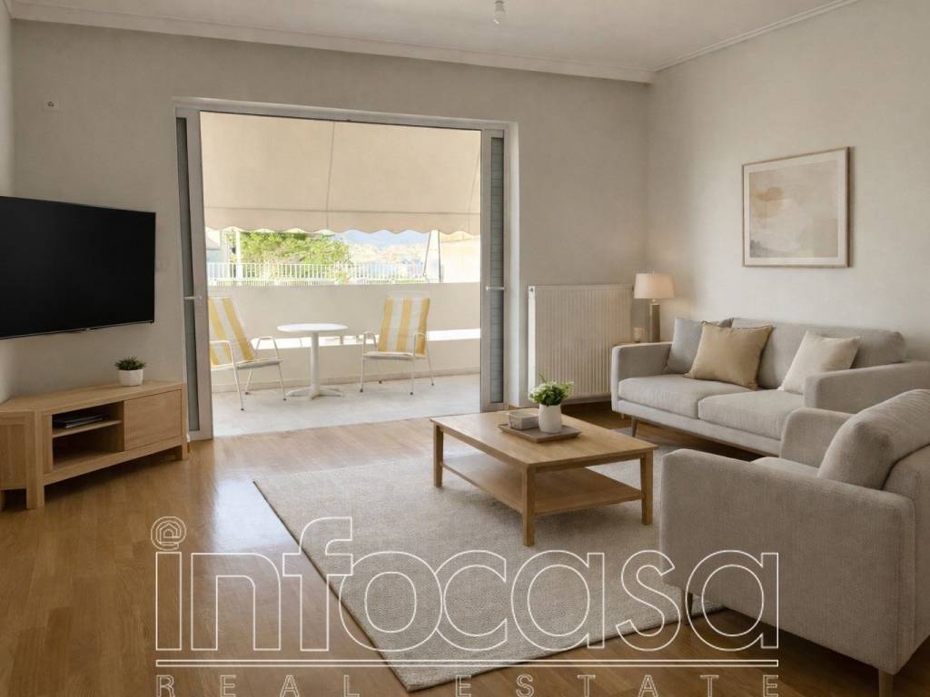 Paleo Faliro: Bright and fully renovated 85 sq.m. apartment on the 6th floor, in a quiet and central location. The property consists of spacious living room, two bedrooms, kitchen and bathroom with Fornasetti tiles. It has a large terrace with open views and very good natural lighting. It has semi-autonomous natural gas heating, air conditioning, aluminum window frames with double glazing, and wooden floors, branded built-in electrical appliances and washing machine. It also has security door, video intercom, night lighting, storage space and separate laundry room. Ideal for comfortable living, close to the markets, transportation and the sea. Contact person: Eleni Kolia 6977084868, 2107255653, email: info2@infocasa.gr