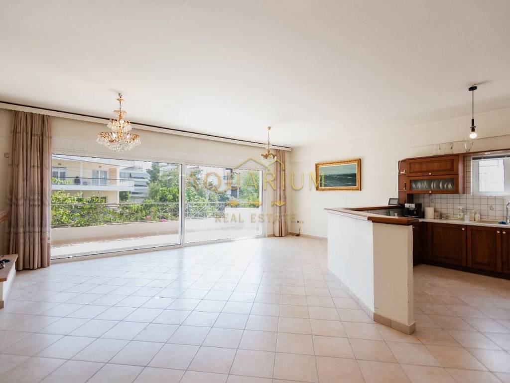 Glyfada down town, close to Esperidon square and only in 700 meters from the sea, there is this 1st floor - floor apartment- of 110 sqm. Dual aspect, with good layout and house orientation. Bright and sunny with a large front veranda and one balcony. It consists of a large living room, dining room, open plan spacious kitchen, 2 bedrooms and 2 full bathrooms, storage in the flat. Additionally, a ground floor closed parking space of 22 sqm and an underground storage room of 20+ sqm Part of a small 3 level building with only two ownerships. The flat is generally in good condition, needs probably some remodeling and the building has been recently renovated. Excellent surrounding area with beautiful greenery modern main entrance, large elevator. Quiet neighborhood, close to Glyfada shopping center and to the sea.
