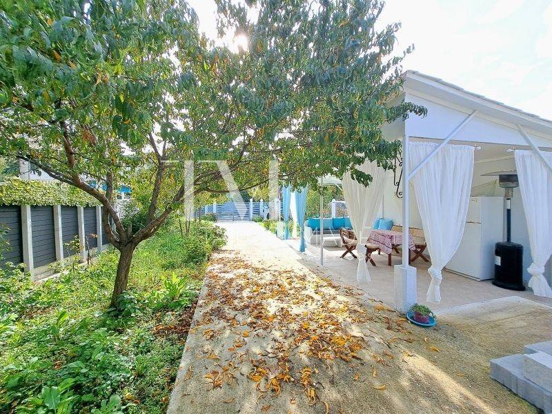 The outdoor space is the heart of the property, designed for the rhythm of summer life. The built-in BBQ, the gazebo with built-in sofas, and the handmade wooden furniture create a setting perfect for long afternoons and quiet evenings. It is a space that feels naturally intimate—ideal for enjoying the garden’s breeze and the area's tranquility after a day at the beach.