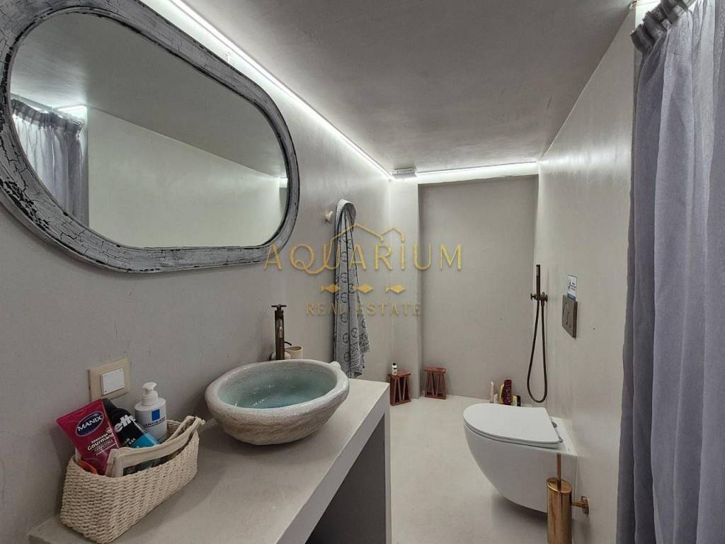 VOULOAGMENI- Kavouri. Semi-basement apartment 48 sq m. next to the sea. It consists of a living room with open kitchen, 2 bedrooms, bathroom, and has direct access to a courtyard. It is located in an excellent location, next to the sea and is just 1 km from the central square of Voula