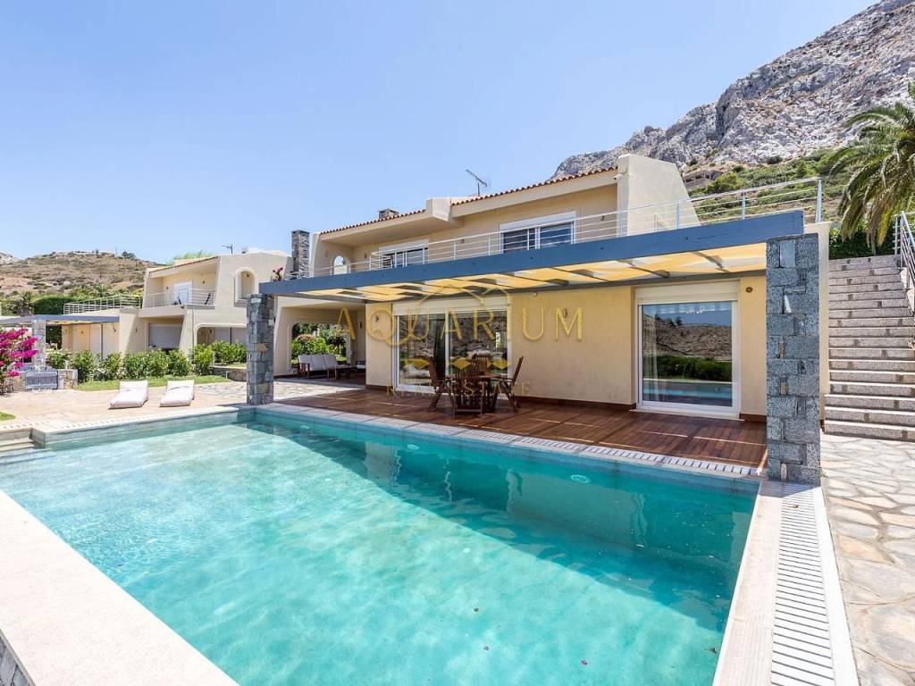 Palea Fokea, location Katafigio , in just 50 meters from a sandy beach with crystal-clear waters, there is this exceptional 3,000 sqm. property. A complex with two identical luxury villas — an ideal choice for permanent residence, holiday retreat, or investment. Located in a serene and scenic area the villas are surrounded by other high-end properties. Each villa offers five spacious bedrooms ( 2 double beds and 5 single beds ), five bathrooms, a fully equipped modern kitchen, a bright and airy living room, flat-screen TV with cable channels, and a cozy fireplace. Additional amenities include an elevator, home office, heating system, and full air conditioning. Outside, each villa boasts a private swimming pool, expansive terraces with breathtaking views of the Aegean Sea, modern appliances, and private parking. With contemporary architecture and premium-quality finishes, this is a true statement of coastal elegance and comfort.