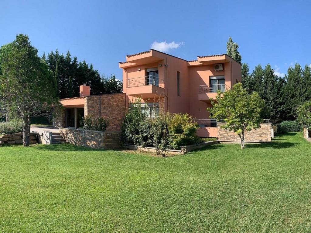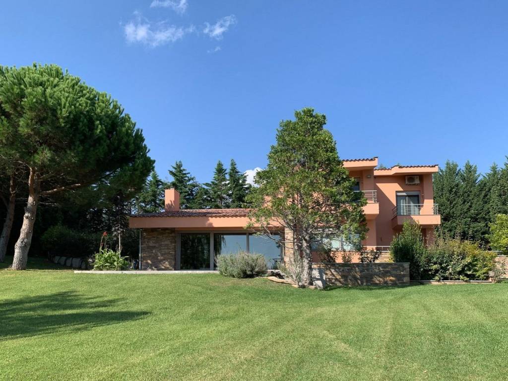 Live in a unique Mediterranean microclimate, at an altitude of 550 meters, surrounded by a dense forest of pines and beeches, very close to the unique blue coasts of Halkidiki and just a breath away from the capital of the prefecture. The exceptional character residence of 410 sq.m. has been designed by a distinguished Greek architect and consists of a spacious and bright reception area, living room, dining room, kitchen, four bedrooms (three master) with the possibility of creating a fifth, elevator, underground parking, storage rooms, and barbecue. It has been constructed with particularly high-quality materials and ideally equipped with the latest technologies that ensure all comforts and a top quality of life. The residence is positioned in the best possible orientation, on a 5.9-acre plot where the cultivation of organic vineyards and organic olives offers an additional boost to the well-being exuded by life in this enchanting landscape. A unique house, with a "strong personality" and "unique aura" awaits to meet you, its new owner. Polygyros is a town known for its rich cultural heritage and stunning natural beauty. It is an ideal location for those seeking an authentic Greek experience. The town is surrounded by lush hills and picturesque landscapes, offering a serene and peaceful environment for both residents and visitors. Polygyros offers a variety of amenities, such as traditional taverns, local shops, and modern supermarkets. Its central location makes it easy to explore the surrounding areas, including the stunning beaches of Chalkidiki and the nearby city of Thessaloniki. The real estate options in Polygyros are diverse, with a range of properties available to suit different lifestyles and budgets. Whether you're looking for a traditional Greek villa, a modern apartment, or a piece of land to build your dream home, Polygyros has something for everyone. Overall, Polygyros is an excellent choice for those seeking a quiet, authentic, and convenient location in Chalkidiki.