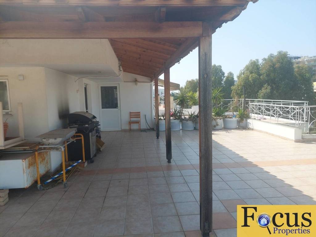 Apartment For Sale, floor: 3rd, in the area: Alimos - Kythirion - Pani. The area of ​​the property is 83 sq.m. plus a studio on the roof of 19 sq.m. with an exclusive terrace of 70 sq.m. with a pergola. It consists of: 3 bedrooms, 1 bathroom/s, 1 wc, 2 kitchen/s, 1 living room/s, and has 1 parking space (1 In a closed area). It was built in 2008. The heating of the property is Autonomous with Oil, while Air Conditioning, Radiators are also available, it has Aluminum frames with Double glazing, energy certificate: C and the floors are: Tiles, Wood. Its condition is: Amazing, located near Transportation, Sea, Beach, Super Market, Market, 500 Meters from the beach, has a view of Mountain, Green, Open, Panoramic, Unobstructed, Urban landscape and has a Southwest orientation. The property is Painted, Frontage, Bright, Airy, Sunny, Airy, Modern, is suitable for a Holiday home and also has the following features and advantages: Screens, Awnings, Elevator, Storage Room, Security Door, Alarm, Night Power, Trees, Pets Allowed, Terrace. Price: €450,000. Focus Properties Real Estate, Contact Phone: +302109888132, email: info@focusproperties.gr, website: www.focusproperties.gr