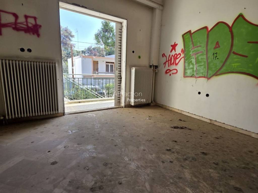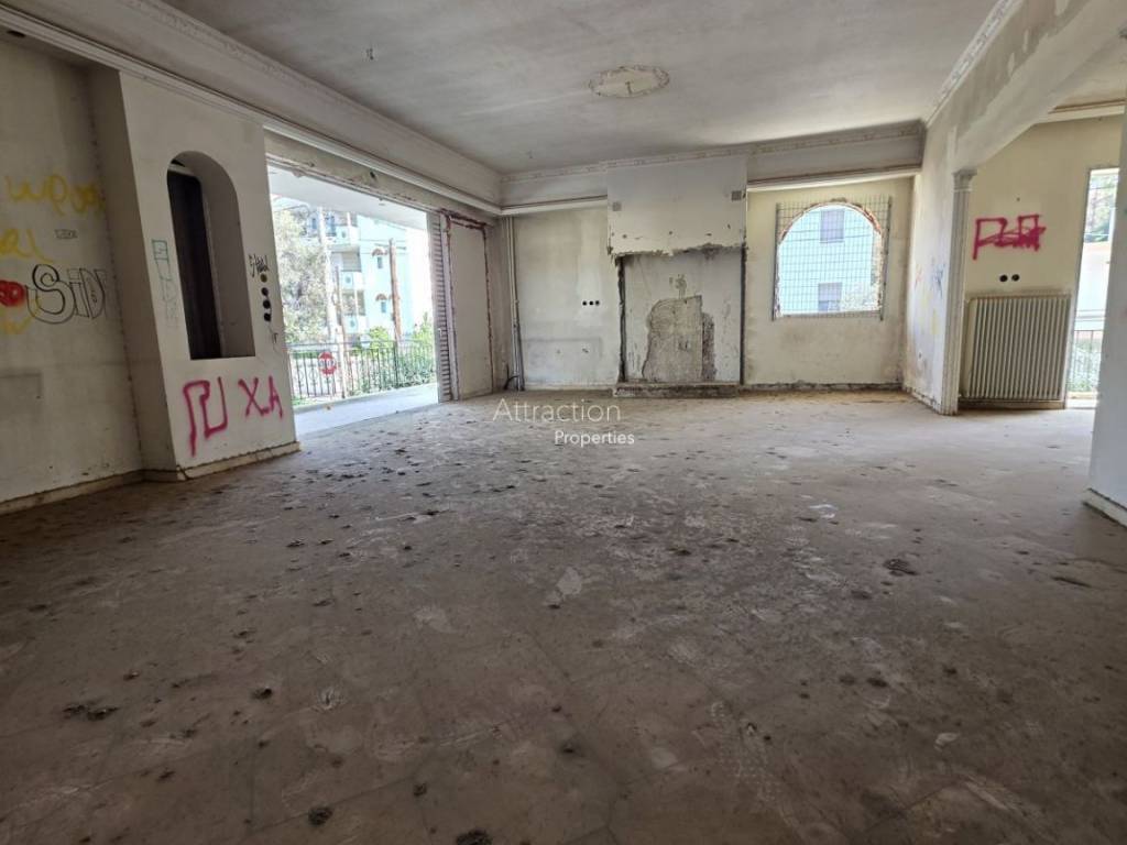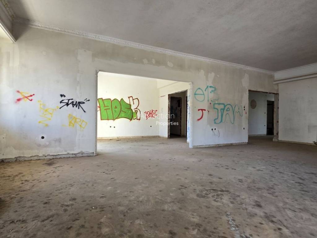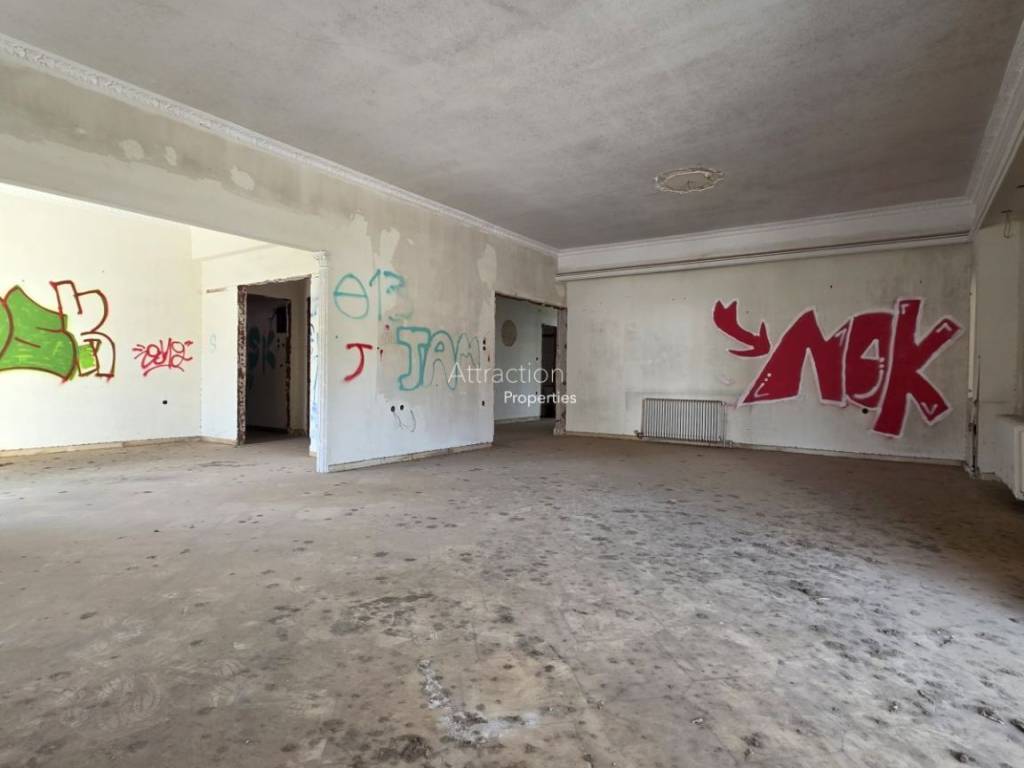 FOR SALE – Corner Apartment 241 sq.m. | Kifisia Corner first-floor apartment of 241 sq.m. for sale, located in a four-level residential building built in 1970, at the corner of Irakleous 21 & Seirinon streets, in Kifisia. The property offers generous spaces and an excellent layout and consists of: - spacious living room - dining area - large kitchen - office - 4 bedrooms - 2 bathrooms - 1 WC - informal sitting / family dining area The apartment is corner, very bright and high-ceilinged, featuring large surrounding balconies and verandas that create a strong sense of openness and space. It also benefits from an independent entrance. The building includes an elevator shaft (elevator not installed). There is a large shared garden and pilotis parking area. The property is located in a quiet residential neighborhood surrounded by greenery, with easy access and comfortable street parking. Please note that the apartment is currently in renovation stage, as extensive stripping works have already been carried out in preparation for a full renovation which was not completed. This offers the opportunity to redesign the property and create an impressive large residence in a prime Kifisia location. Price: €650,000 (negotiable)