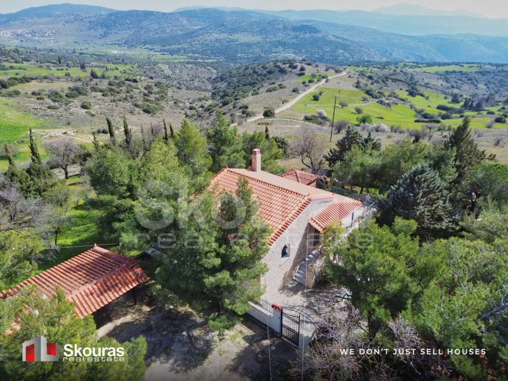 In the picturesque mountain village of Stefani, a unique detached house of 99 sq.m. is offered for sale. The property is developed on two levels (elevated ground floor and semi-basement) and is situated on a large plot of 4,700 sq.m., surrounded by a beautiful natural landscape. The house enjoys a privileged location at the top of a small hill, without neighboring buildings nearby, offering complete privacy, tranquility and beautiful open views of the surrounding countryside. The plot is full of trees and greenery, creating a peaceful environment ideal for those who wish to live close to nature and away from the noise of the city. The outdoor area features a BBQ space and a charming gazebo, perfect for relaxing moments, family gatherings or quiet evenings in a natural setting. The property was externally renovated in 2019 with stone cladding and has enhanced insulation within the walls as well as wooden panel (rabote) interior lining, ensuring excellent thermal insulation and comfort throughout the year. The main level includes two spacious bedrooms and an open-plan living room with kitchen. The lower level is a large open space with a fireplace and a small kitchen, which can easily be configured according to the needs of the owner, either as a cozy playroom, a second living area, or even an additional bedroom or guest space. The village of Stefani lies at an altitude of about 840 meters and has approximately 200 residents, preserving the authentic character of a quiet mountain settlement. It is located about 30 km from Corinth and approximately 140 km from Athens International Airport Eleftherios Venizelos. The nearest area with shops and essential services is Chiliomodi, about 11 km away (around 15 minutes). This property offers more than just a residence; it provides a unique living experience surrounded by nature, combining privacy, tranquility and the authentic beauty of the Corinthian landscape. Skouras Real Estate #1 Greek Real Estate Agency in the Peloponnese 4 Offices: Nafplio | Kalamata | Corinth | Porto Heli 3000+ Properties | 18+ Years of Experience | Support in 5 Languages Marketing & Website - European Property Awards 2020 Marketing Techniques & Development - EPPA 2022 & 2024 Call Center: +30 27520 29529 Mobile: +30 6971736506 Email: spdo@skourasrealestate.gr Property Manager: Dionysopoulos Spiros More than 3,000 properties available at: www.skourasrealestate.gr Note: The property information is based on data provided to us by the owners. Skouras Real Estate is not responsible for any inaccuracies. An ID card or passport is required to visit properties. Locations on the maps are approximate