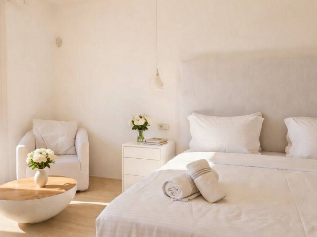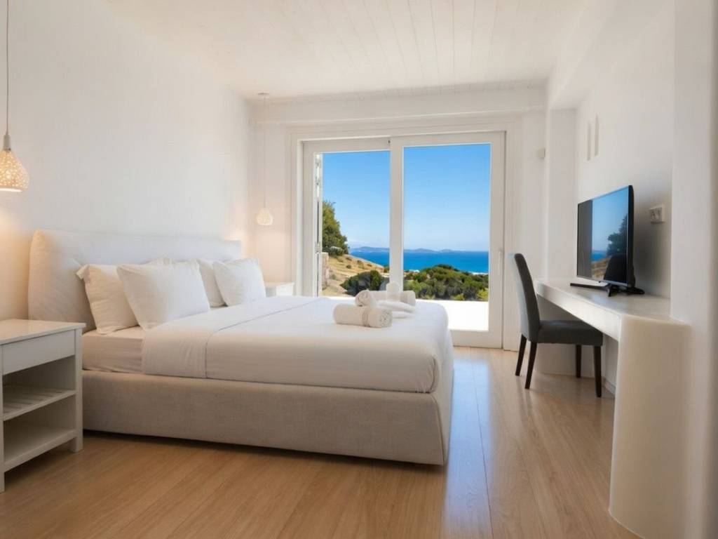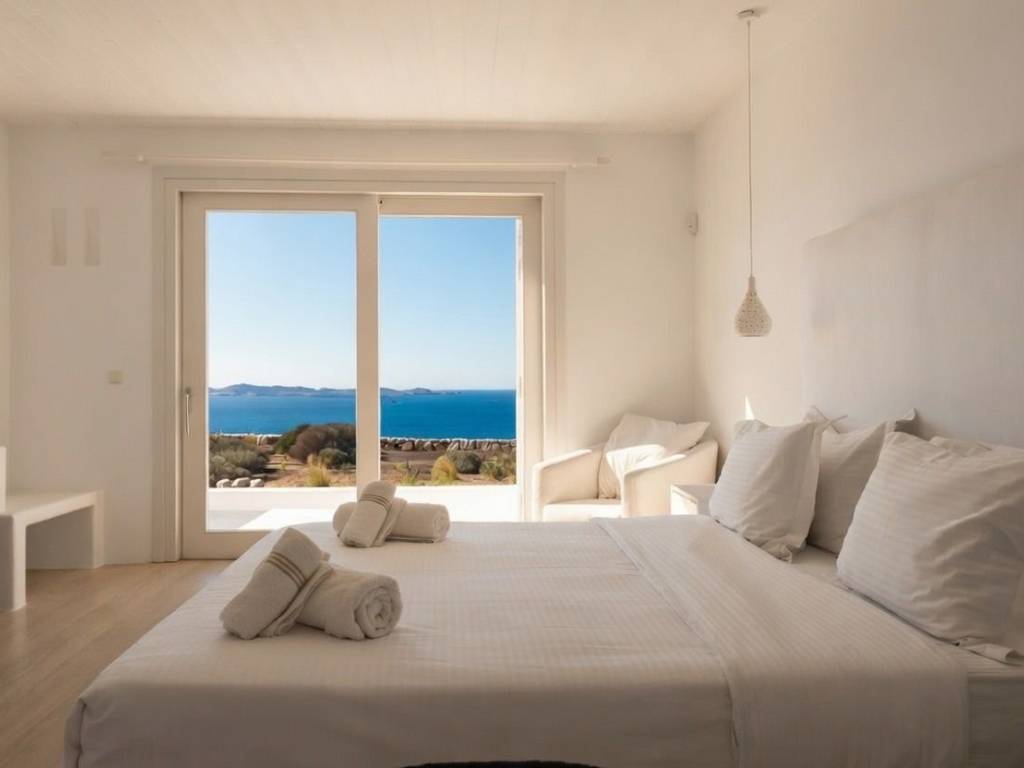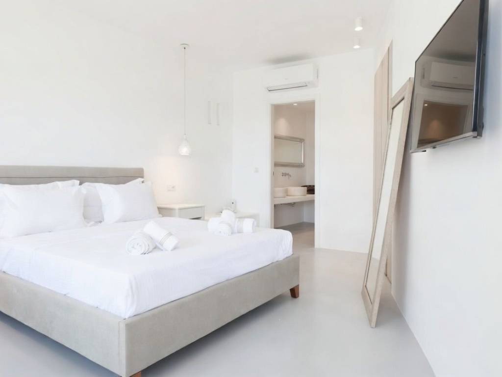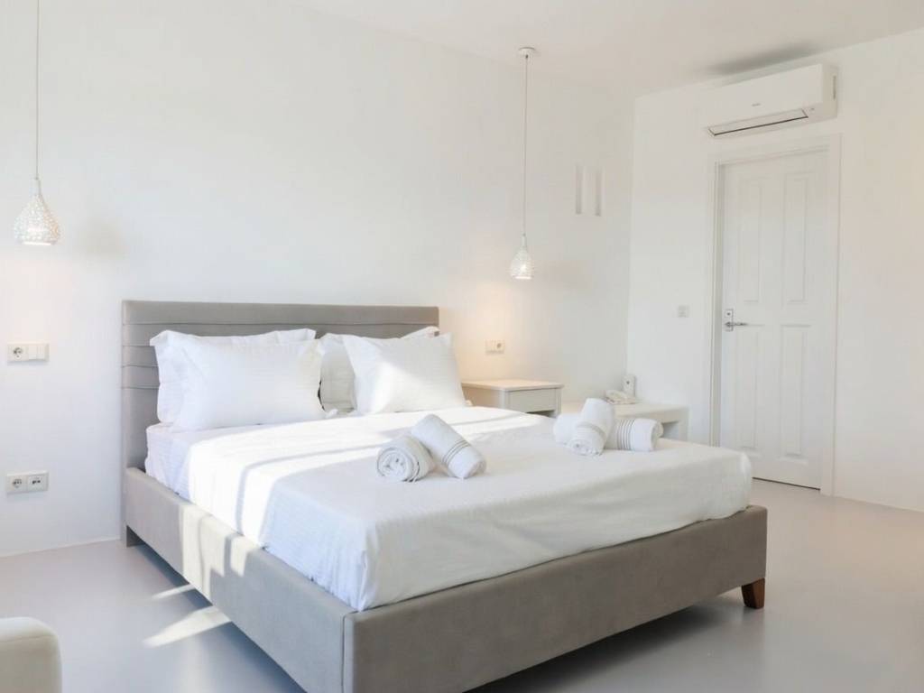 Villa Veluwe,a newrly refurbished 3-bedroom ,3- bathroom villa which accomondates up to 8 guests and is located in the iconic area of Mykonos, Tourlos! The surface area of the house is of 160 sqm, with 180• Sunset Views of Mykonos. Just 5mins away from Chora ,The Mykonos ‘ Town ,famous for its vivid cosmopolitan night and day life. Villa Veluwe offers 3 elegant bedrooms and 3 bathrooms ,each in unique style . There is a large living room with a sofa that turns to a bed ,to accomondate extra people. moreover , you can find a fully equipped kitchen with all standard appliances. Suitable for families as well as groups , conveniently located just a breath away far from Chora. * Daily housekeeping *WIFI * TV * Kitchen *Parking *Outdoor dining area *Swimming pool * Sitting lounges