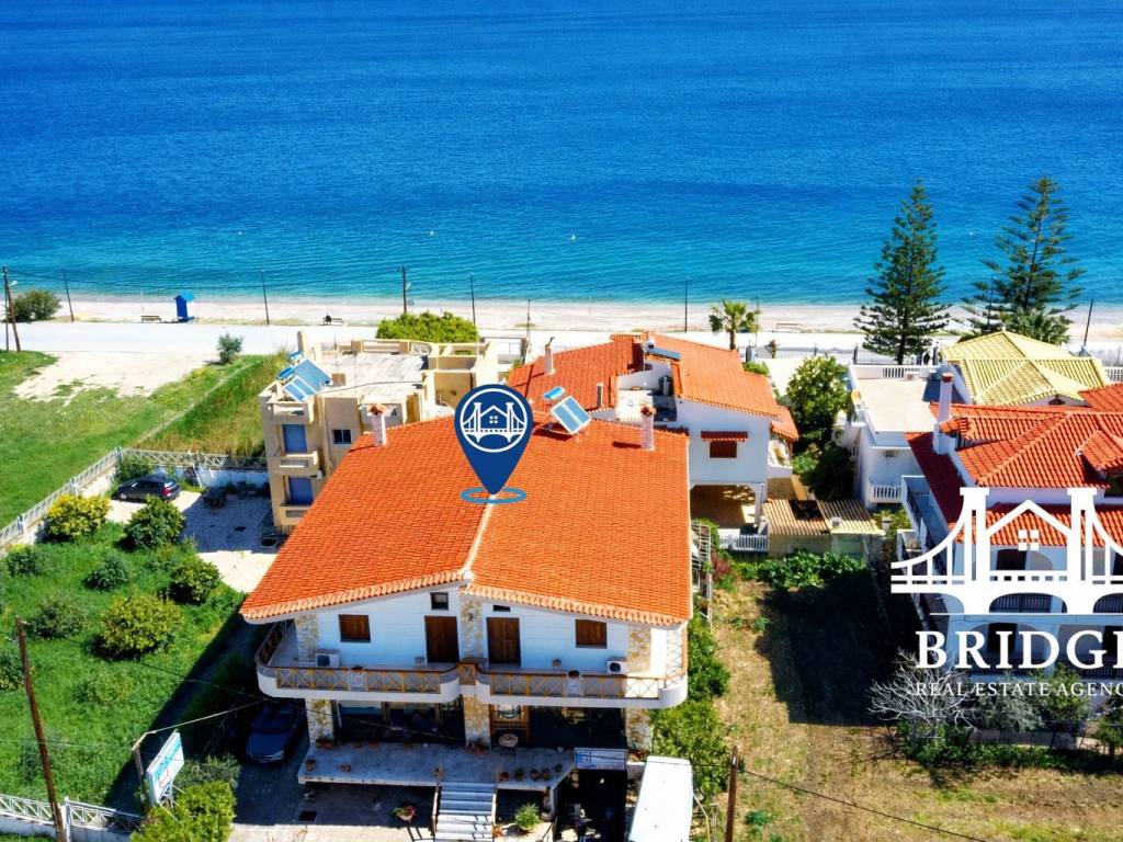 Certainly! Here is the professional English version of the sales advertisement, optimized to attract international buyers and investors. FOR SALE: Luxury Floor Apartment 193 sq.m. – Loutra Oraias Elenis Just 20m from the Sea – Exquisite Stone & Wood Design An exceptional 193 sq.m. floor apartment is available for sale in the prime location of Loutra Oraias Elenis. This high-aesthetic property combines traditional warmth with modern comfort, making it an ideal choice for a permanent residence or a high-yield vacation home. Property Highlights: Total Area: 193 sq.m. Layout: 4 spacious bedrooms on the main floor + 2 additional bedrooms in the attic. Living Spaces: 2 large, inviting living rooms characterized by elegance. Kitchen: 1 large, open-plan kitchen seamlessly connected to the living area. Bathrooms: 2 full bathrooms. Year of Construction: 2002 (Excellent condition). Architecture: Unique design featuring natural stone and wood, providing a warm, high-quality character to a bright and airy space. Amenities & Features: Heating: Autonomous heating with boiler & Solar water heater. Brightness: Dual-aspect (front-to-back) and exceptionally sunlit. Beach Access: Only 20 meters from the sea – literal walking distance. Strategic Location: Central Spot: Situated in the heart of the local market (adjacent to supermarkets and shops). Accessibility: 10 minutes from Corinth & Loutraki. Travel Hub: Just 1 hour from Athens International Airport (Eleftherios Venizelos). Proximity: Very close to popular tourist resorts and archaeological sites. Important Notice: According to Greek Law (N.4072/11-04-2012), a valid ID and Tax ID (AFM) are required to view the property, along with the signing of the property showing form. Property details are provided by the owner. The location on the map is approximate for privacy reasons. Contact us to schedule your viewing: +30 6974 917 762 +30 6949 147 865 Bridge Real Estate Epidavrou Ave., Loutra Oraias Elenis (Opposite Galaxias Super Market)