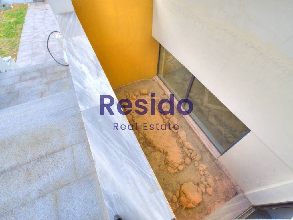 For sale, a detached house of 363 sq.m. on a 521 sq.m. plot in the center of Drosia. This modern construction (building permit 2016) combines minimalist design with a unique archaeological feature.