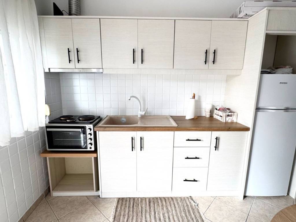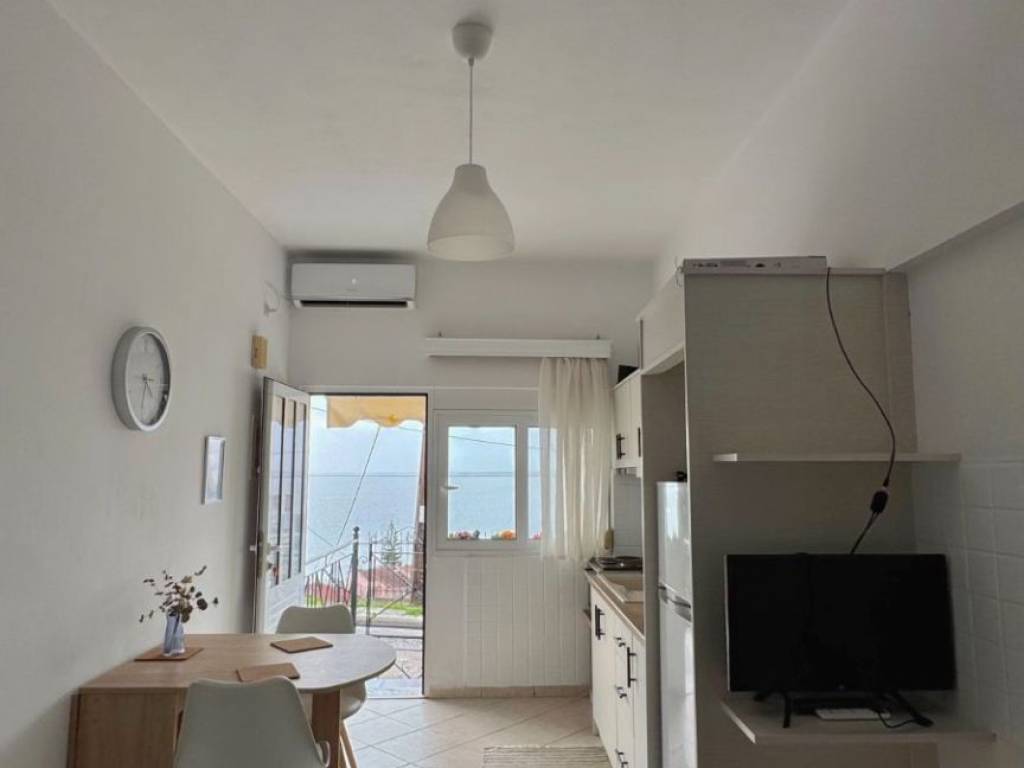 For sale is an excellent, fully furnished apartment in a prime location in Menidi, Aitoloakarnania, just 400 meters from the sea, with open views of the Ionian Sea and unique sunsets that create a truly special atmosphere. The property is particularly bright and neat, with a functional layout that makes ideal use of the space. The main area includes a comfortable living room with a sofa that turns into a comfortable single bed and TV, as well as a sleeping area with a bed, creating a pleasant and relaxing environment. It also has air conditioning for comfort all year round. The kitchen is modern and practical, fully equipped with a refrigerator, electric hob and oven, as well as ample storage space. Just opposite is the dining room with a table and two chairs, ideal for daily meals in a beautiful and functional space. The bathroom is stylish and neat, with clean lines and a functional layout that ensures comfort and practicality in daily use. A distinct advantage of the property is the beautiful balcony with a table and chairs, from where one can enjoy their coffee overlooking the sea and relax watching the sunset. The property is sold fully furnished and ready for immediate occupation, making it an ideal choice for both a holiday home and an investment property, thanks to its close proximity to the sea.