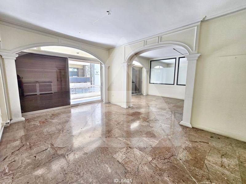Kolonaki - Floor Apartment 230sqm bedrooms 3, levels 1, raised 1st, year built 1980, energy class G, living room, kitchen, 2 bathrooms, wc, heating type: central (natural gas), air condition, dual aspect apartment, luminous, frontage, storage space 5sqm, balconies, large balconies, balcony 20sqm, elevator, aluminum frames, double glazed windows, wood & marble floors, secure door, residential zone, eastern orientation, access from asphalt, price is negotiable, close to metro/train (up to 100m), close to bus stop (up to 100m), close to hospital (up to 100m).