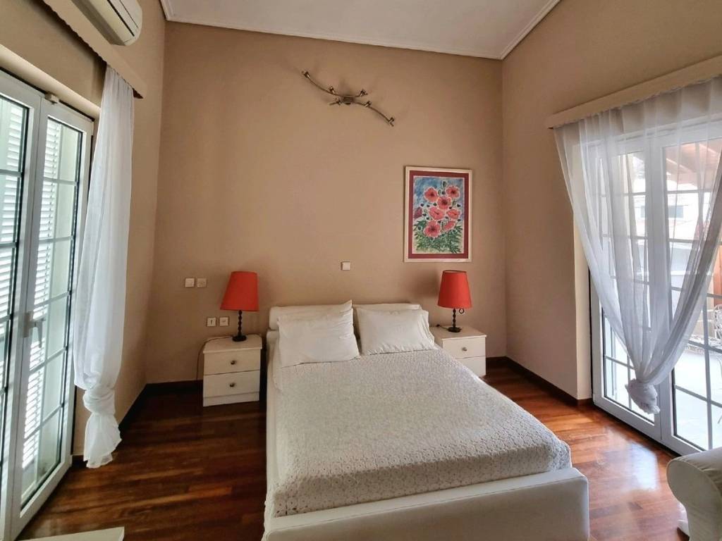 ανεξάρτητη κατοικία σε οικόπεδο 480τμ αποτελείται απο Ισόγειο με μεγάλο σαλόνι με τζάκι και μεγάλη βεράντα, κουζίνα (με εντοιχισμένες συσκευές Miele), γραφείο και WC. Στον 1ο όροφο υπάρχουν 2 μεγάλα master υπνοδωμάτια με βεράντες και ένας χώρος καθιστικού. Επιπλεον διαθέτι σοφιτα με μπάνιοκαθώς και ανεξάρητο διαμέρισμα στο κάτω επίπεδο με ξεχωριστή εισόδο με σαλόνι με τζάκι, κουζίνα, 1 υπνοδωμάτιο και ένα μπάνιο με ντουζιέρα. Πλησίον αγοράς και έυκολη πρόσβαση στην εθνική οδό. Ωραίος μεγάλος κήπος