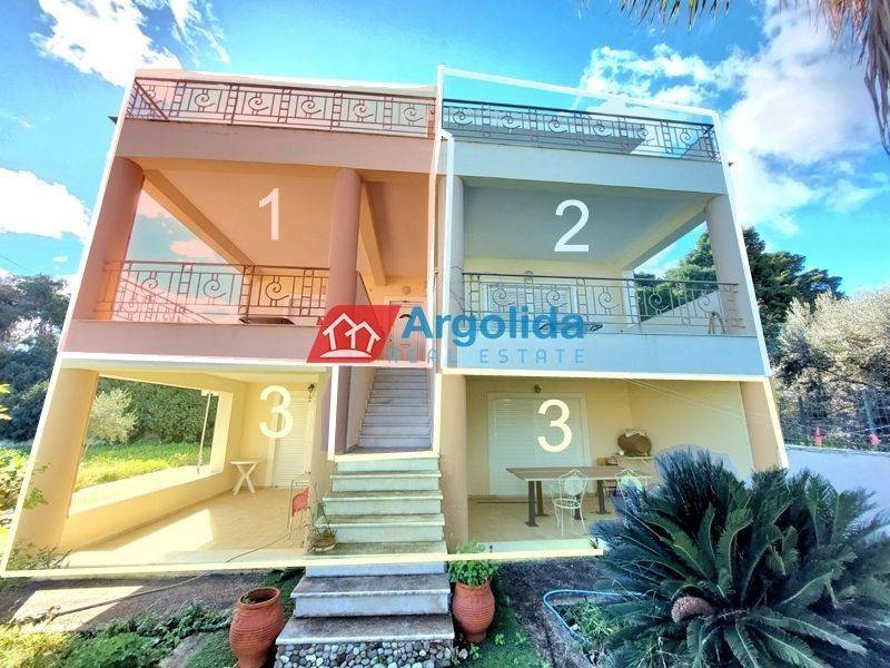 In a privileged elevated location in Aigeira, in the area of Akrata, a residential complex is offered for sale, enjoying impressive panoramic views of the sea, the Corinthian Gulf and the lush green countryside. The property is ideal both as a permanent residence or holiday home, as well as for investment purposes. The complex consists of two furnished two-level maisonettes of 90 sq.m. each, with entrance on the first floor, each featuring two comfortable bedrooms, two bathrooms, a living area and a kitchen, offering a functional layout and comfortable living spaces. Within the same complex there is also a ground-floor furnished apartment of 90 sq.m., which includes two bedrooms and two bathrooms, making it ideal as a guest residence or an independent living unit. The property is situated on a fenced plot of 573 sq.m., with shared landscaped gardens, parking spaces and a barbecue area, creating a pleasant environment for relaxation and outdoor gatherings. In the same area there are also two adjacent buildable plots available, offering significant potential for further development or expansion. The two 90 sq.m. maisonettes can also be sold separately at a price of €150,000 each. This is a particularly attractive property opportunity combining beautiful views, a peaceful natural setting and close proximity to the sea, making it an excellent choice for residential use or investment in the wider area of Akrata.