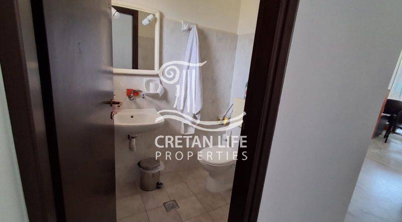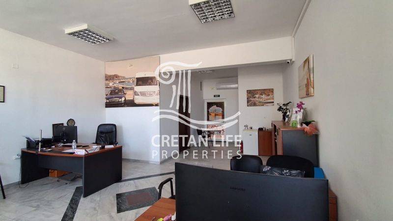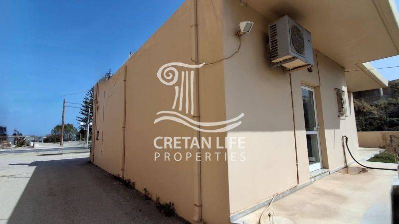 A raised ground-floor commercial property of 60 sq.m. is available for long-term lease, situated on a 1,044 sq.m. plot in a highly privileged location in Agia Marina, on the Chania–Kissamos Old National Road, just 100 meters from the beach.