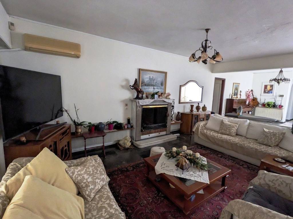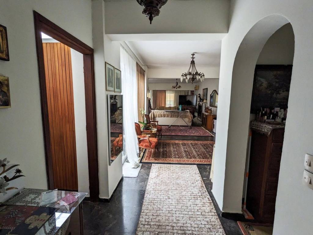 The apartment is located in the center of Agia Paraskevi, near the main street of Agiou Ioannou. It has an area of 236 square meters, of which 16 square meters are an atrium. It consists of 4 bedrooms, 3 bathrooms, 1 wc, kitchen and spacious living- dining room with fireplace. It is extremely bright, has large balconies with nice view, and parking.