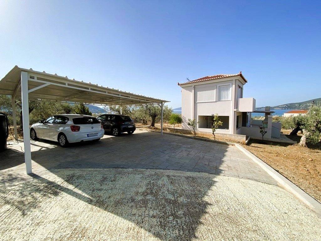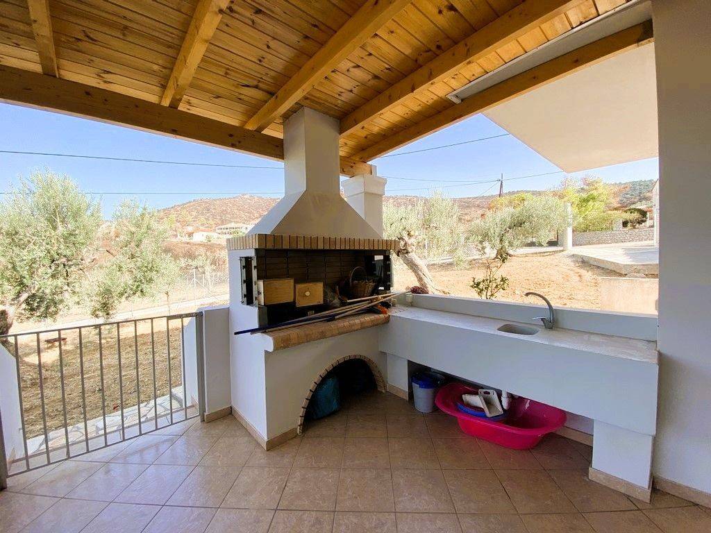 Property Manager: Vasilios Tsechagias Contact Phone: +30 697 452 0045 Luxury Detached House for Sale – 142 sq.m. with Panoramic Sea View and Direct Access to the Sea – Ermioni, Dardiza Just 150 meters from the beach, in the heart of the Argolic Riviera, in the beautiful town of Ermioni and specifically in the quiet and sought-after area of Dardiza, a unique 142 sq.m. detached house is available for sale. The property is set within a fenced land plot of 4,007 sq.m. and offers panoramic views of Dardiza, the island of Hydra, and Dokos. The residence is developed on two levels and offers comfort, tranquility, and easy access from an asphalt road. It is surrounded by an olive grove with productive olive trees and includes all modern amenities for permanent residence or holiday use. Location – Ideal for Escape & Relaxation Only 150 m from the sea Panoramic views of mountains, countryside, sea, Hydra, and Dokos Quiet area but not isolated Close to popular beaches: Dardiza, Thermisia, Petrothalassa, Kouvertas, Bourloto, Mandrakia, Porto Hydra Ideal base for island getaways: Hydra, Poros, Spetses, Porto Heli Property Features Total area: 142.02 sq.m. Ground floor: 85.92 sq.m. First floor: 66.10 sq.m. Year of construction: 2011 Energy class: D 4 bedrooms 2 bathrooms Spacious open-plan living room – dining area with fireplace and kitchen 30 sq.m. verandas with roof-garden character Internal staircase Bright and dual-aspect layout with modern design Space available for an additional bedroom Outdoor Areas Well-maintained garden with paved courtyard Covered parking BBQ area Storage room (10 sq.m.) Olive grove ️ Amenities & Equipment Autonomous heating system with oil boiler 4 A/C units Instant water heater with boiler Aluminum window frames with double glazing and insect screens Fireplace Built-in wardrobes Alarm system Tiled roof Water tank Security railings The property is sold fully furnished and equipped. ️ Extra Opportunities There is an active building permit for an additional 100 sq.m. detached house + basement Second land plot of 3,500 sq.m. (non-buildable) An excellent opportunity for those seeking a property of high aesthetics and strategic location near the sea. Ideal for permanent residence, holiday home, or tourist investment (long-term or seasonal rental). A unique opportunity for a premium investment in the rising market of Eastern Peloponnese. All information has been provided by the property owners and we bear no responsibility for any possible inaccuracies. For the property viewing, it is necessary to present your ID card, Tax Identification Number (AFM) and sign the relevant form in accordance with Law 4072/11-04-2012 (Government Gazette 86 A).