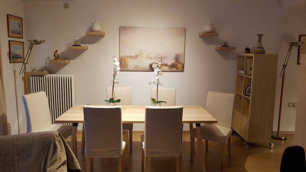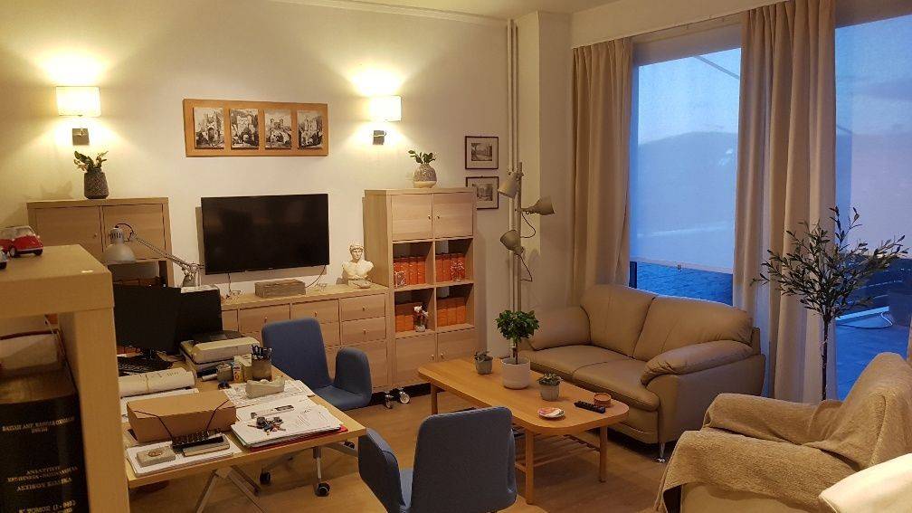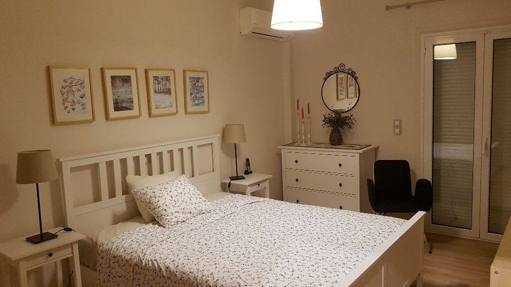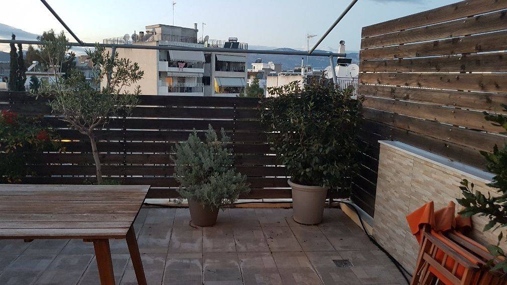 Ρετιρέ ανακαινισμένο (2018), 96 τ.μ., 5ος όροφος, φωτεινό, πολύ μεγάλη βεράντα/θέα, χωλ, σαλόνι/τραπεζαρία, 2 άνετα υπνοδωμάτια, μπάνιο, WC με ντουζιέρα, πλήρως εξοπλισμένο με ηλεκτρικές συσκευές (σχεδόν αχρησιμοποίητες) και τέσσερα (4) αιρ κοντίσιον TOYOTOMY/DAIKIN/HITACHI, ηλιακός θερμοσίφωνας, συναγερμός, πίσω βεράντα (στα δωμάτια), τέντες.