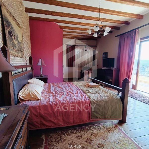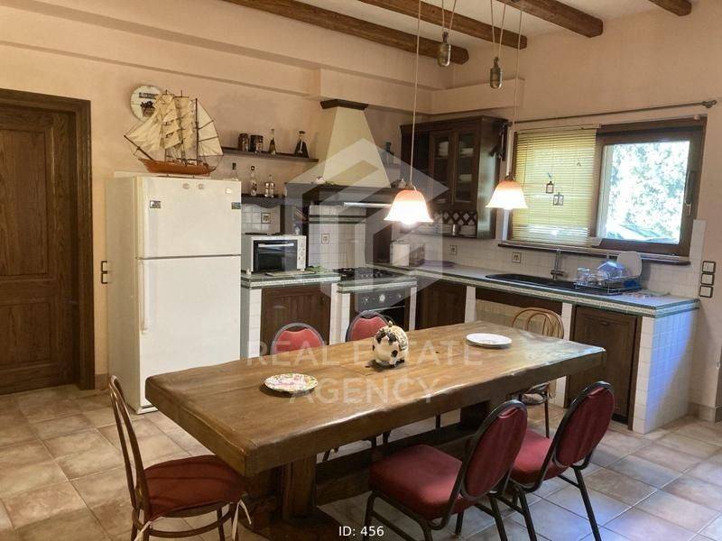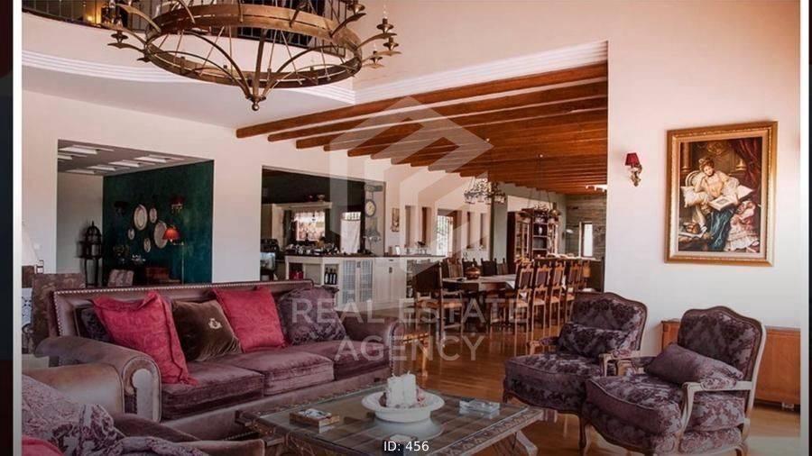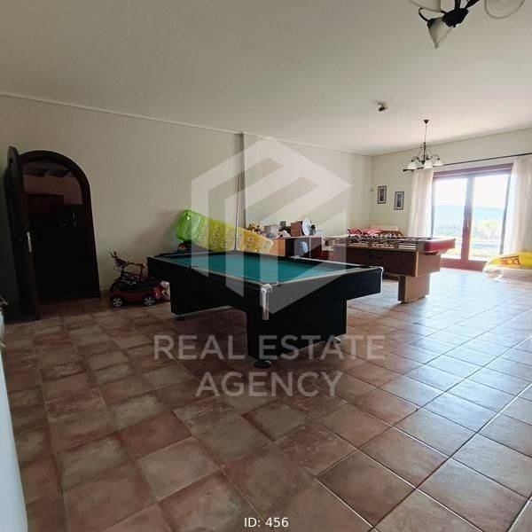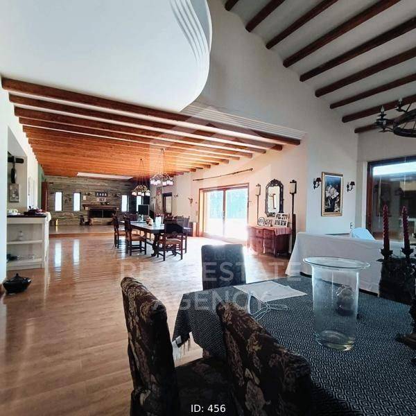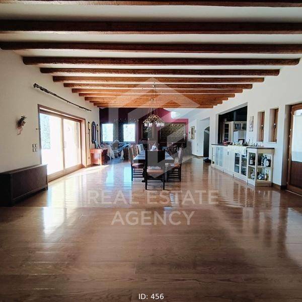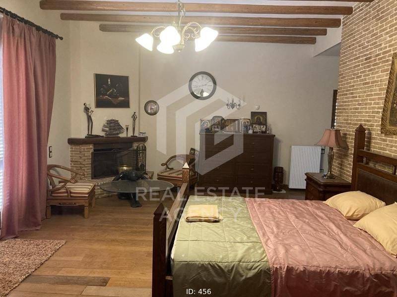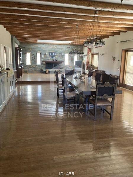 Detached house for sale 1000 sq.m., in Kalyvia. It consists of 7 bedrooms, 2 living rooms, 3 kitchens and 7 bathrooms. In detail, the main entrance of the house is located on the first floor. Upon entering, we find the wide wooden staircase and the internal elevator on the right. Then the reception area we see the large open plan living room with the dining room which has large windows that lead to huge verandas and have a view of the pool. To the left of the dining room is the large kitchen which has a functional layout. Next to it is a large bathroom with a built-in bathtub. In the background is one bedroom which has a fireplace, spacious bathroom, dressing room and a very beautiful view of the garden. Going up to the upper floor, on the right we find a beautiful large internal balcony. While on the left are the 3 bedrooms, each with a bathroom, fitted wardrobes, a fireplace and large verandas. There is also a small kitchenette on the first floor. On the ground floor we find many storage spaces which have a characteristic wooden round door and the cellar. Directly opposite is the maid's room which has a kitchen and a bathroom. Moving forward we find the large open space of the living room and kitchen which has a large glass window and leads to the garden and the swimming pool. On the right there is a separate playroom and gym. Next are the 3 bedrooms which have a fireplace, large wardrobes and a bathroom. On the first floor there is also a shared bathroom while moving forward we see the hammam. From the kitchen there is a door which leads to the back area which has an artificial pond which ends in a small waterfall. The ground floor is characterized by the stone from which many walls are clad. Each bedroom has its own fireplace and bathroom. The property has 3 closed garages of 60 sq.m. each, vineyards and drilling. The villa is located on a fenced plot of 4 acres while its total area is 25 acres. This is an excellent property and a unique opportunity. ND