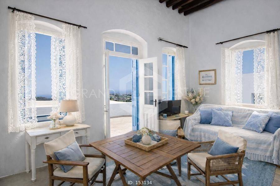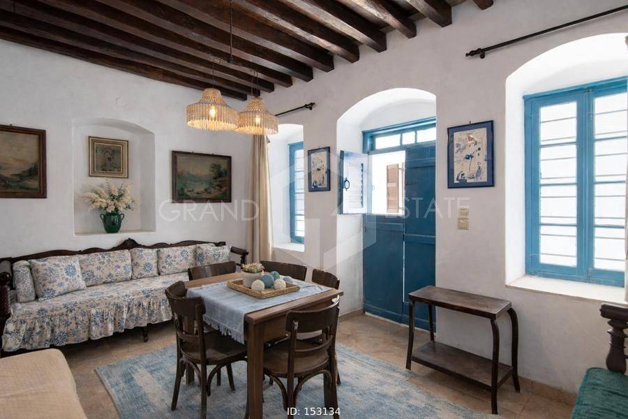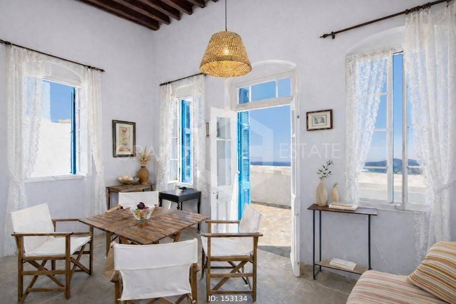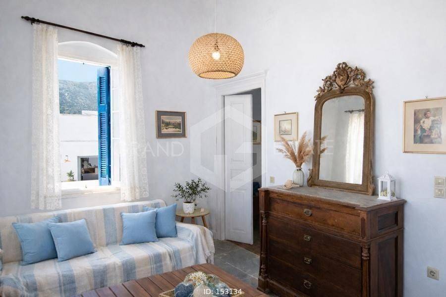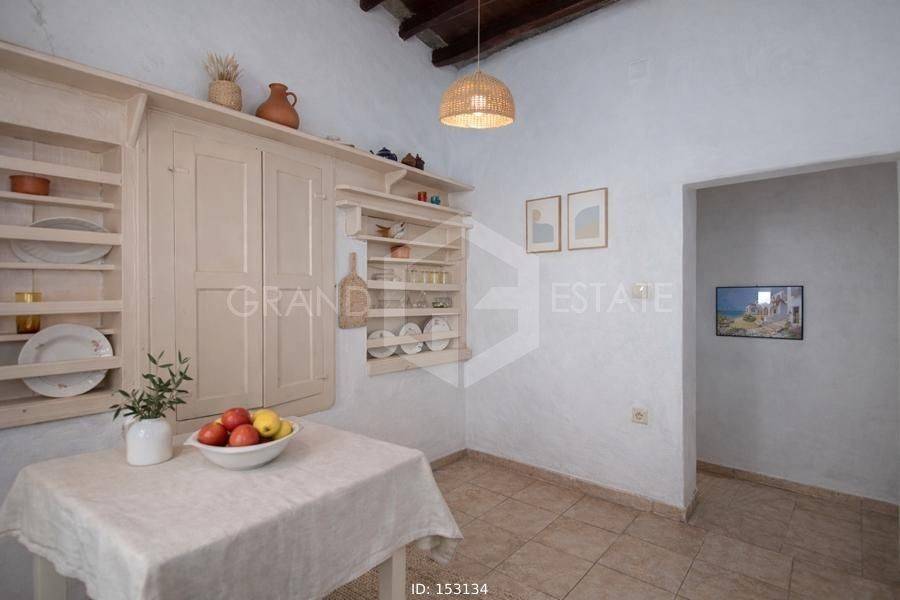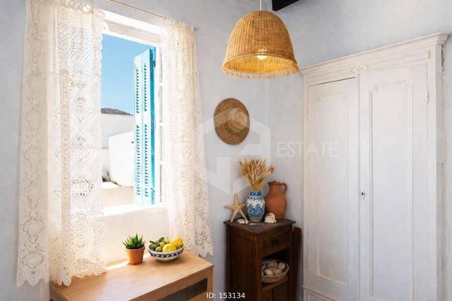 Sifnos - Detached House 129sqm bedrooms 3, levels 2, ground floor (80sqm) - 1st (49sqm), renovated, year built 1856, renovation year 2010, energy class E, living room, hall, kitchen, bathroom, heating type: no heating, quiet, dual aspect apartment, luminous, sea view, frontage, storage space, boiler, balconies, large balconies, private terrace, wooden frames, wood & tile floors, separate kitchen, internal staircase, pets allowed, residential zone, access from pavement. Unique Mansion, Traditional, Stone Independent Detached House 129.50 sq.m. 2 levels (Ground floor & 1st) in Ano Petali in an excellent location with a wonderful view of the church of Agios Ioannis, the picturesque settlement, the nature of the island, the clear blue sky and the beautiful Aegean Sea.. This Traditional, Cycladic house dates back to 1856, renovated in 2010 where all plumbing, electrical, roofs were replaced, terrace insulation was done and all while respecting the history and identity of this house to the maximum. As a traditional period house, it has great flexibility in layout and an abundance of independent spaces on each level for any purpose, need and desire. The layout of the 2 levels is currently as follows: On the ground floor there are 2 entrances, the central double door - with a comfortable and shady courtyard where one can enjoy the pulse and life of the settlement - and a second smaller and more private one, on the side of the building. Starting from the main entrance, we enter a very large and bright space that currently functions as the living room on the ground floor. A door from the living room leads to a small bedroom with a window & wardrobe, while next to this room we find the hall, reception area as well as the 2nd smaller and more private entrance. From this space, 3 steps lead to a space that currently it is a dining room, also with a window overlooking the yard. Passing this room we find the spacious, independent kitchen and the door that leads to the small backyard for more private moments of relaxation or morning coffee! As a period house, and wanting to preserve its character, the toilet is in its original location, outside in the yard as soon as one exits the kitchen. There is a large shed for the colder and wetter months, while with a little modification, it can easily become part of the house internally for anyone who wishes. A beautiful wooden staircase leads to the upper floor, where we find a spacious and bright bedroom. A large door from the room leads to the most beautiful part of the house, the second living room which is always bathed in light from the large windows all around. This room has a comfortable balcony for the afternoon hours with a unique and breathtaking view. Finally, on the same floor there is an additional bedroom equally bright with its own window with a beautiful view. The house is traditionally built, made of stone, has high ceilings, with wooden beams and many elaborate details that have been preserved from the time the mansion was built, such as: the original doors, windows, built-in wooden wardrobes in the bedrooms, the traditional iconostasis in the upper bedroom, the beautiful wooden dish rack, the wooden shelves, the inlays and the imposing arches in the two halls. The property can also be sold furnished upon request if desired. Ideal for a holiday home or permanent residence, but also an investment of high performance and traditional beauty.