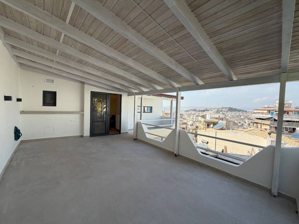 FOR SALE: Penthouse apartment, bright 64sqm on the 1st floor of a duplex. The apartment consists of 2 bedrooms, bathroom, open plan living room and kitchen, a large 40sqm veranda with pergola and view of the Acropolis/Lycavitos/Filopappou, a balcony in the bedrooms and a 4sqm storage (loft). It was fully renovated in 2026 with high quality and aesthetic materials, has autonomous oil heating, 3 air conditioners and installation for a solar water heater. It has a modern alarm system, video intercom and optical fiber (300mbps). It is fully equipped and furnished. The apartment is located on Kynosargous Hill (Neos Kosmos), in a completely residential neighborhood with stunning views of the center of Athens, a 5-minute walk from the Agios Ioannis and Neos Kosmos metro stations, 5 minutes from shops and restaurants and 10 minutes from the Acropolis and Syntagma. Access to the apartment is via a pedestrian street with steps.