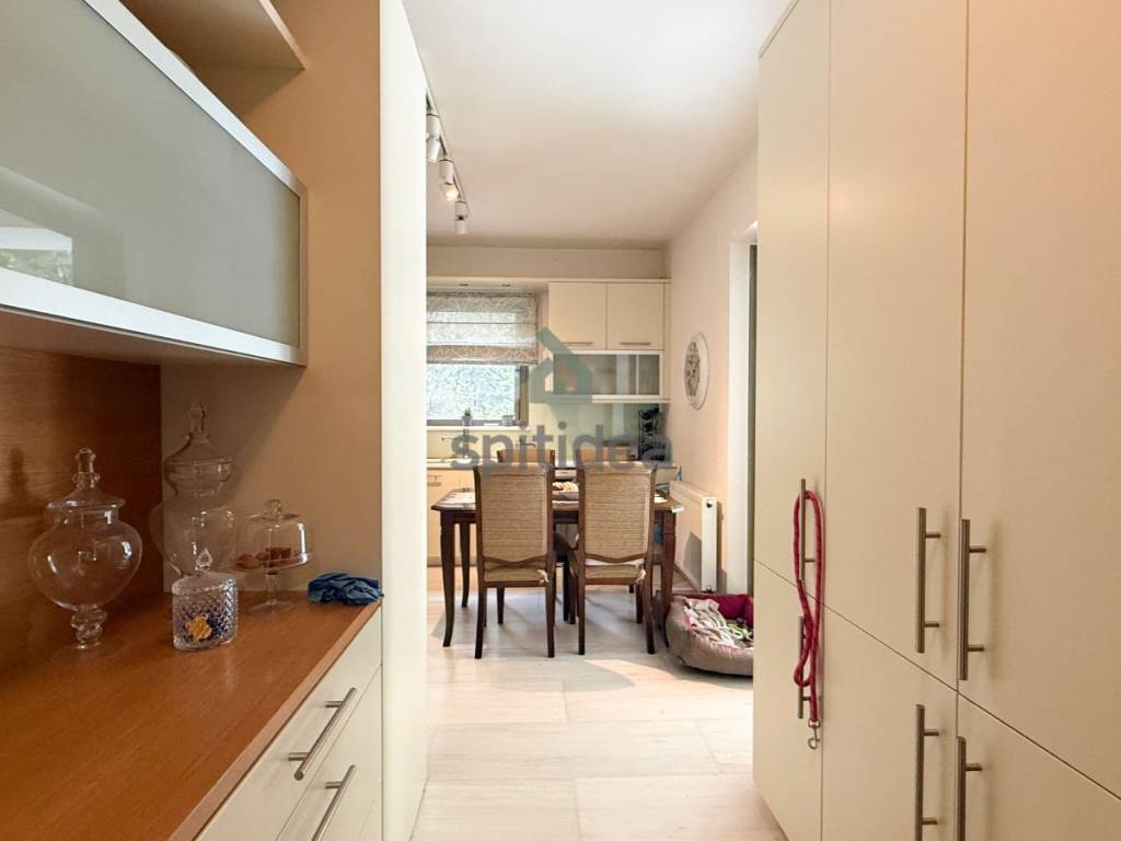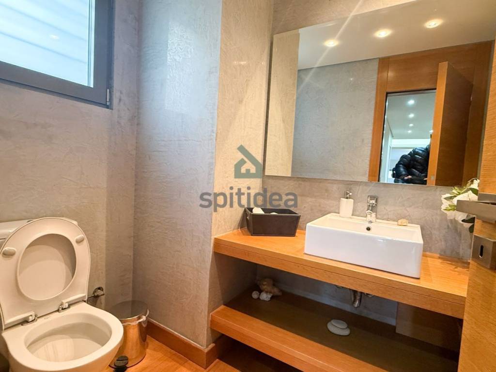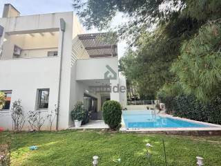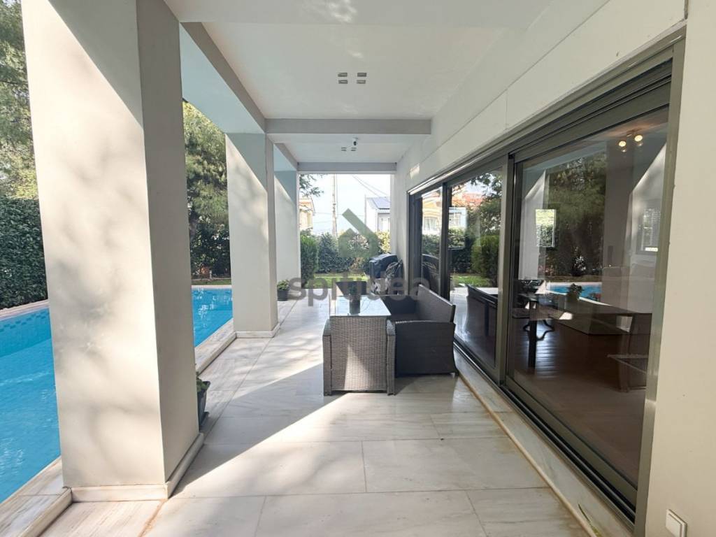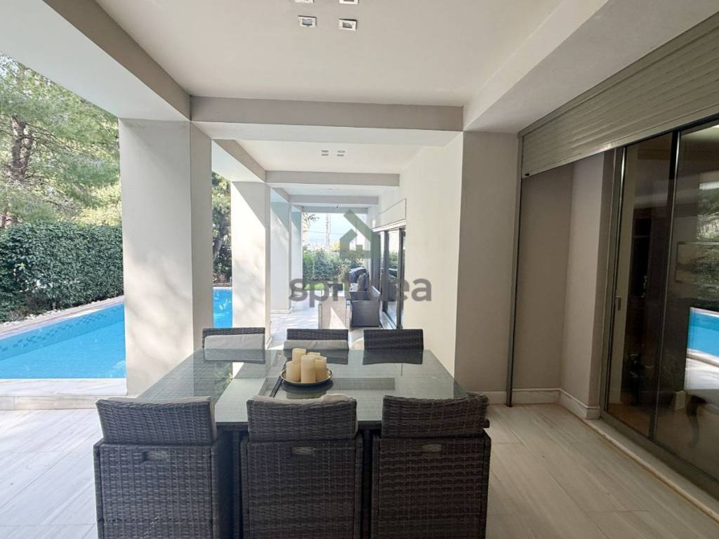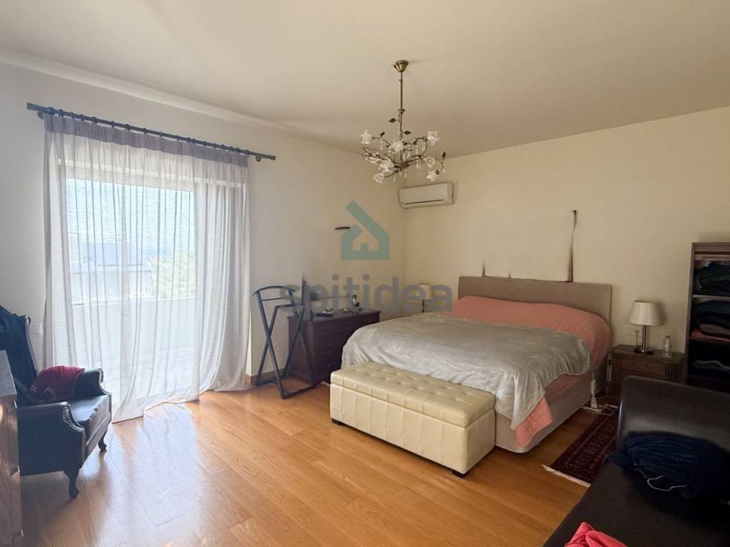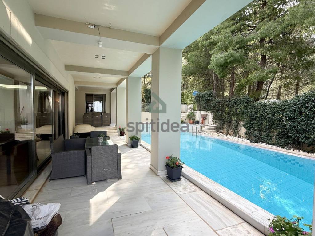 This is an excellently constructed detached house with a total area of ​​530sqm. It is divided into 3 levels which are arranged as follows: On the ground floor of 150sqm there is a large living room with fireplace, dining area, separate kitchen, one bedroom and bathroom. From the living room and kitchen we exit to a beautiful landscaped area - a terrace with a swimming pool of 60sqm and a large garden of a total area of ​​300sqm. We go up to the 1st floor of 146sqm with an internal staircase and an elevator where there are 4 master bedrooms with their own bathroom, verandas around all rooms with a view of the garden and the pool. Finally, in the semi-basement of 235sqm there is a large area with wardrobes, 2 bedrooms - a playroom with their own bathroom, storage rooms, a boiler room and 3 closed parking spaces. It has aluminum frames with double glazing and screens, electric shutters, wooden oak floors in almost all areas, individual oil heating per level, 60sqm swimming pool, 300sqm garden, alarm. It is located in a very nice and quiet neighborhood.