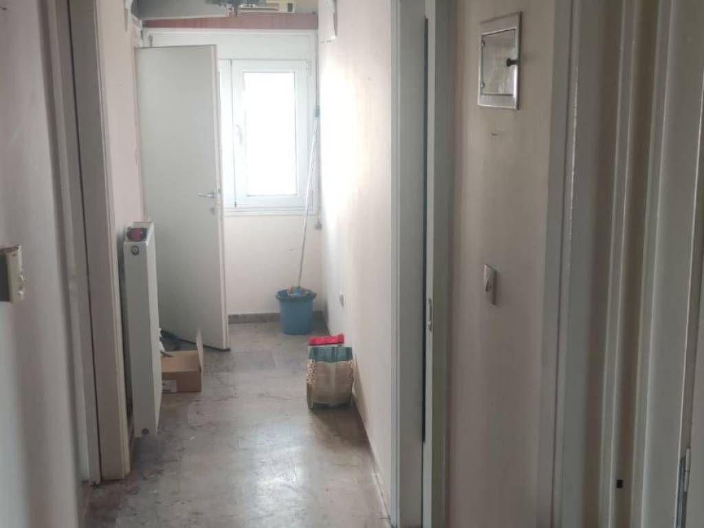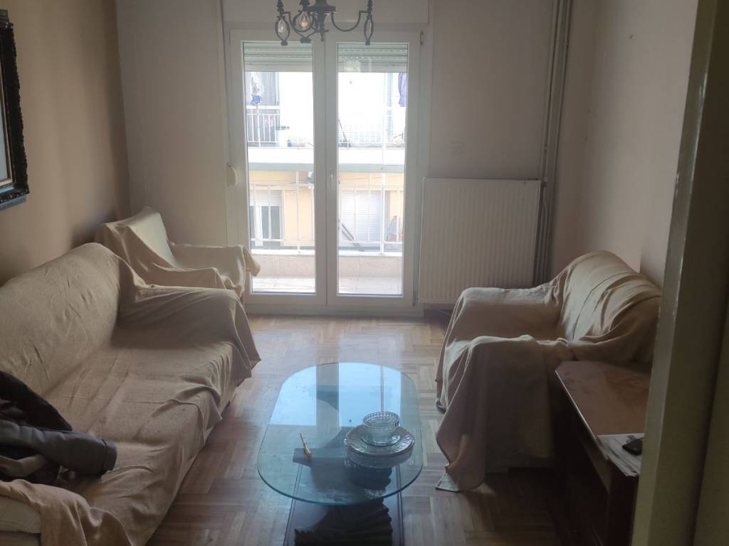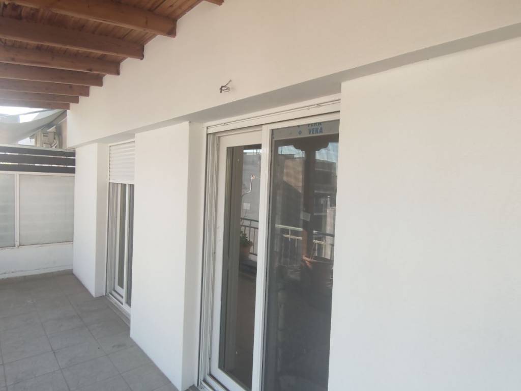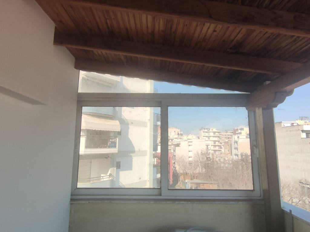 "For sale: Penthouse apartment in the city center, located next to the Courthouse. It is a 10-minute walk from the port and 15 minutes from Aristotelous Square. The property features two spacious bedrooms and an open-plan living room/kitchen. It has been partially renovated, including new window frames (with screens) and thermal insulation on both the front and back balconies. It features a new natural gas boiler, a new solar water heater, and a new air conditioning unit. The kitchen cabinets were replaced 3 years ago and are in excellent condition. A highlight of the apartment is the very large front terrace with a tiled roof. The bathroom is fully functional but may require renovation for aesthetic reasons. The apartment is located on the 4th floor of a 5-story building. Its location is ideal, being very close to the railway station and a metro stop, making it perfect for students or professionals working in the city center. It also offers great investment potential and could be split into two smaller studios. The building is quiet. While there is no dedicated parking space, there are three open lots located right below the building. Private seller."