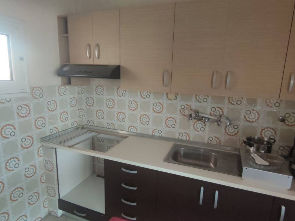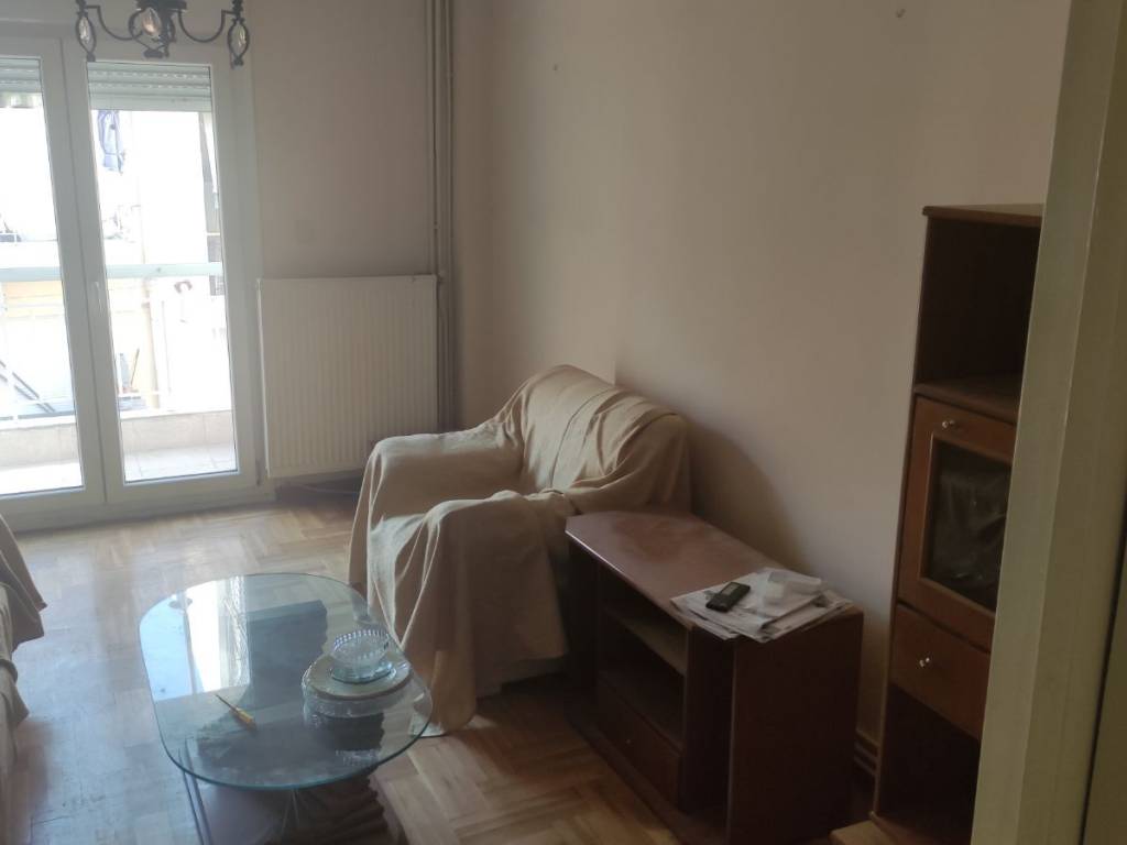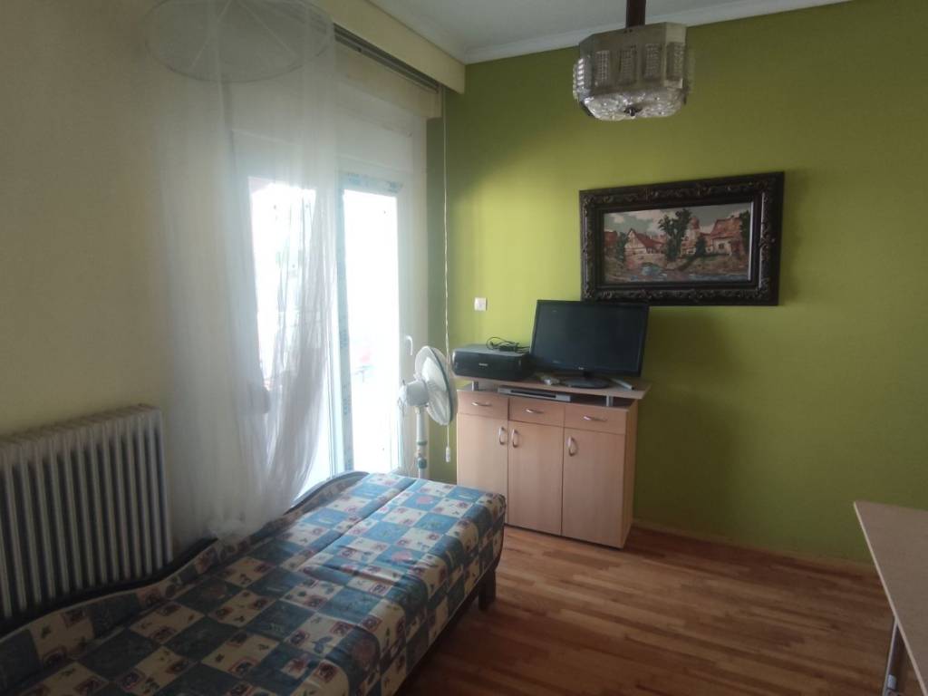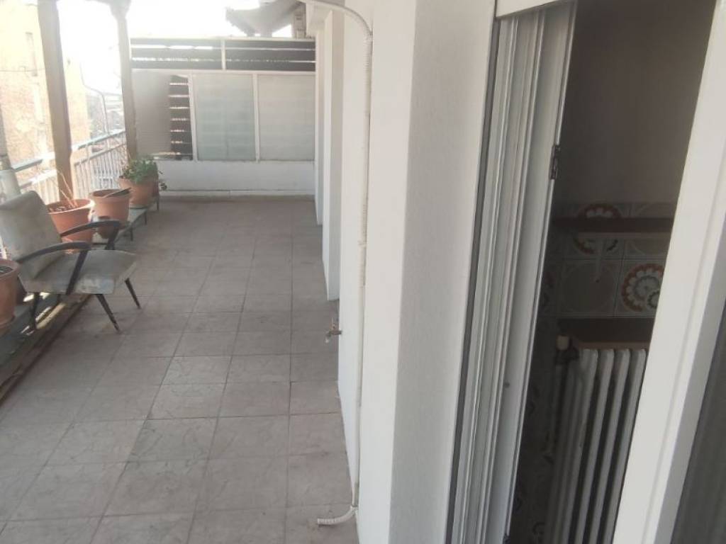 "For sale: Penthouse apartment in the city center, located next to the Courthouse. It is a 10-minute walk from the port and 15 minutes from Aristotelous Square. The property features two spacious bedrooms and an open-plan living room/kitchen. It has been partially renovated, including new window frames (with screens) and thermal insulation on both the front and back balconies. It features a new natural gas boiler, a new solar water heater, and a new air conditioning unit. The kitchen cabinets were replaced 3 years ago and are in excellent condition. A highlight of the apartment is the very large front terrace with a tiled roof. The bathroom is fully functional but may require renovation for aesthetic reasons. The apartment is located on the 4th floor of a 5-story building. Its location is ideal, being very close to the railway station and a metro stop, making it perfect for students or professionals working in the city center. It also offers great investment potential and could be split into two smaller studios. The building is quiet. While there is no dedicated parking space, there are three open lots located right below the building. Private seller."