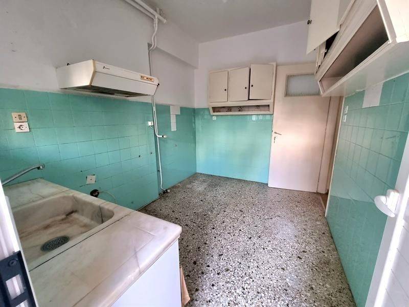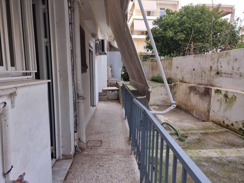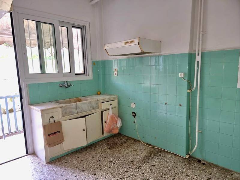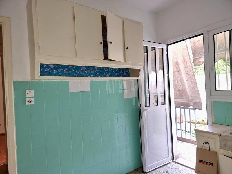 Agios Dimitrios (Attica - Southern Suburbs), Centre - Apartment 55sqm bedroom, levels 1, ground floor, needs renovation, year built 1975, energy class D, living room, hall, kitchen, bathroom, heating type: central (oil), air condition, quiet, luminous, solar heater, balconies, large balconies, tents, loft storage, aluminum frames, double glazed windows, door screen, mosaic floors, separate kitchen, secure door, pets allowed, within city plan, residential zone, eastern orientation, access from asphalt, close to square (up to 200m), close to super market (up to 200m), close to school (up to 200m), close to bus stop (up to 100m), close to metro/train (up to 500m), close to university/college (up to 100m), close to sea (up to 100m), close to market (up to 200m).