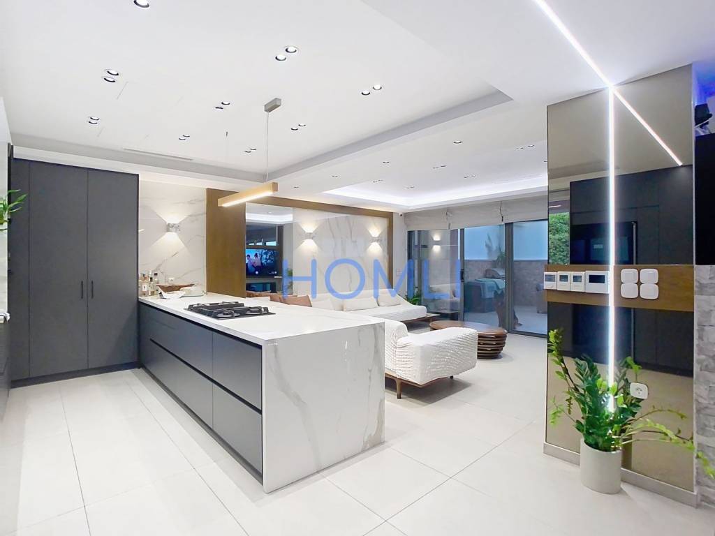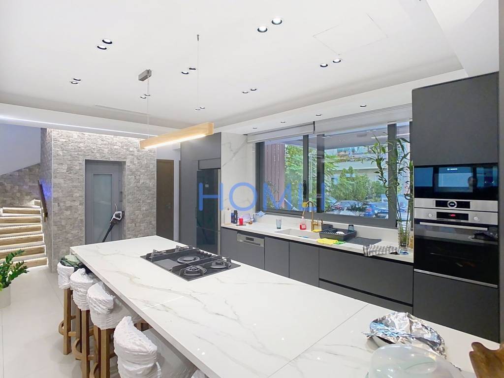 Newly built luxury 4-level detached house with swimming pool, 3 parking spaces, open gym, playroom, attic and utility rooms, in a quiet neighborhood in Kallithea. Constructed in 2023, has a reception area with a spacious living room, open-plan kitchen with dining area and a terrace inside. It has a heat pump for heating and cooling, thermally insulated aluminum frames with double glazing, screens, alarm, cameras, internal elevator and staircase, 1 master bedroom with walk-in closet, with the possibility of creating an additional room and roof garden. It is located in an excellent location, in the market of Kallithea near schools, sports facilities and just 10 minutes from Onassis Hospital, with direct access to Syggrou Avenue. HOMLI, property code 24240, contact us by phone at 2104446498.