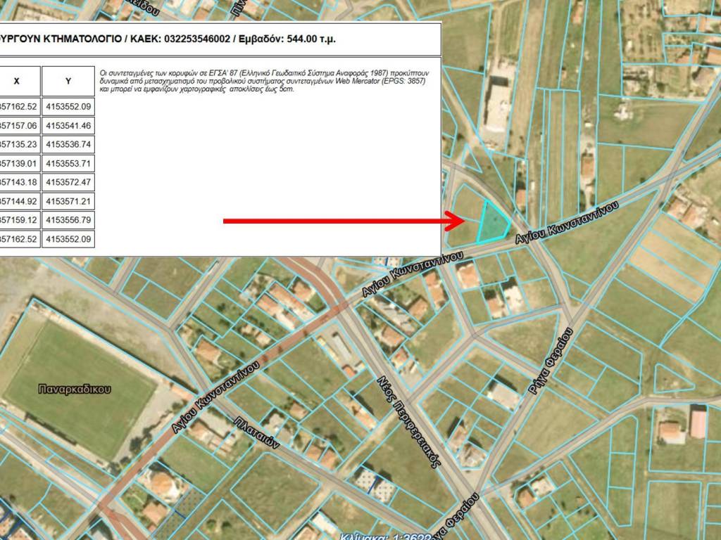 Οικόπεδο, Ν. Αρκαδίας, Τρίπολη, 544 τ.μ., Εντός σχεδίου, Συντελεστής Δόμησης 0,6. Συντελεστής Κάλυψης 60%, Προσανατολισμός Ανατολικομεσημβρινός, Επίπεδο Γωνιακό με Συνολική Πρόσοψη 62 μ. Οικοδομήσιμο, Επι Λεωφόρου Αγίου Κωνστανίνου,