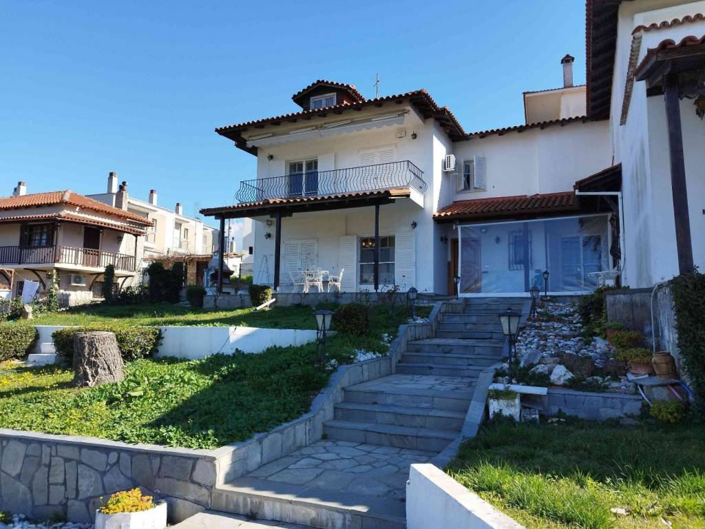 In Plagiari, on a beautiful and quiet neighborhood within the settlement. On an independent plot of 950 sq m 2 houses for sale. Each with a different entrance. The first has an area of 230 sq m on 3 levels. On the ground floor of 78 sq m where the main entrance is, there is the living room, a separate kitchen with an exit to the backyard. From here there is access for the 1st floor and the basement. On the 1st floor of 75 sq m, there are 3 bedrooms, a bathroom, a wide balcony with a view of the sea and Thessaloniki. In the basement, of 80 sq m there are storage rooms, utility rooms and the oil burner. The second house has an area of 213 sq m on 2 levels. On the 135 sqm ground floor, there is a spacious living room. Separate kitchen with sittining room and exit to the back yard. On the 80 sqm, 1st floor, there are 3 bedrooms, spacious bathroom, and wide balcony with view to the sea and Thessaloniki. Both houses have parking spaces in the yard. Both are sunny, airy, bright with a beautiful view that will not change. They can be sold, either together or separately. Plagiari is a town of approximately 6000 inhabitants, in the East of the Prefecture of Thessaloniki. And at a distance of 22 km from the center of Thessaloniki. belongs to the Municipality of Thermi and is 15 km, far away from the City of Thermi, which is the capital the Municipality. But is closer to Perea city and the seafront of the Thermaikos, Less than 10 minutes. Plagiari has an altitude of approximately 150 m and spreads out in a very beautiful location, on the slopes of the hills. The provincial road Thessaloniki-Epanomi passes through the center of the settlement. As a result, in Plagiari, there is many shops of various kinds and frequent public bus transport. Is only 22 km from Aristotelous Square, the center of Thessaloniki. 10 km from the clear beaches of Epanomi, 10 km from Thessaloniki International Airport and only 10 to 15 minutes from the largest shopping centers of Eastern Thessniki Due to its amphitheatrical location, but also its climate, it is considered one of the best areas for residence and for this reason we believe that in the coming years the area will again have the great residential development of the past. The settlement already has a natural gas network and the sewage network is almost complete.