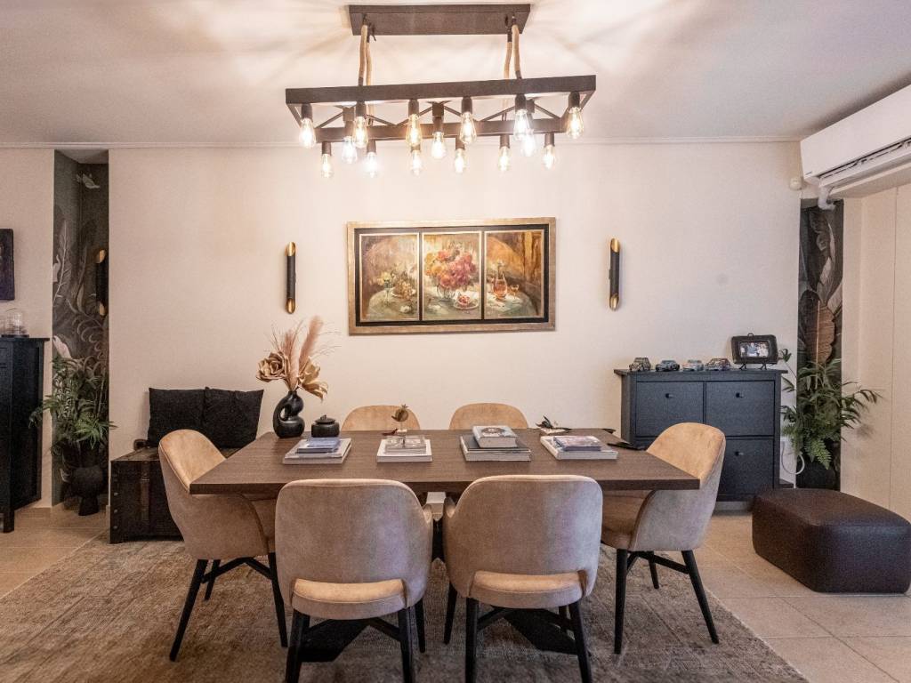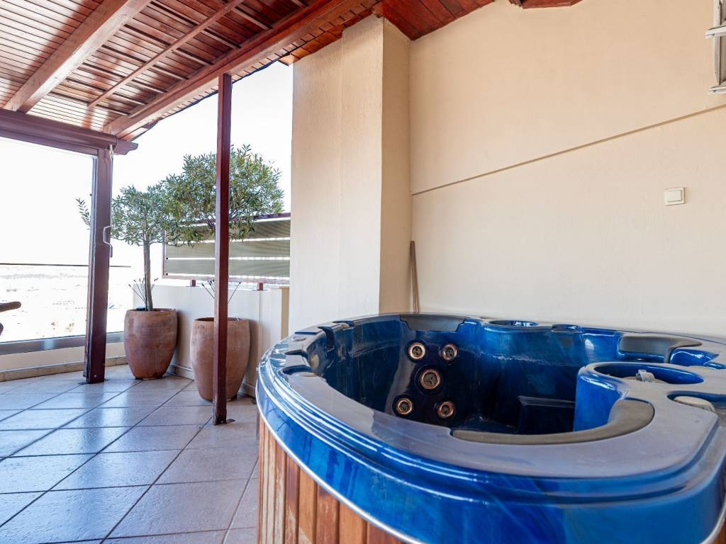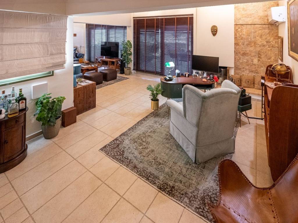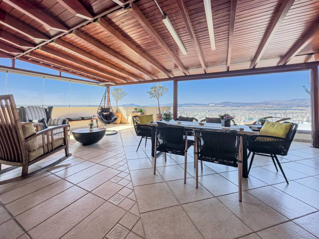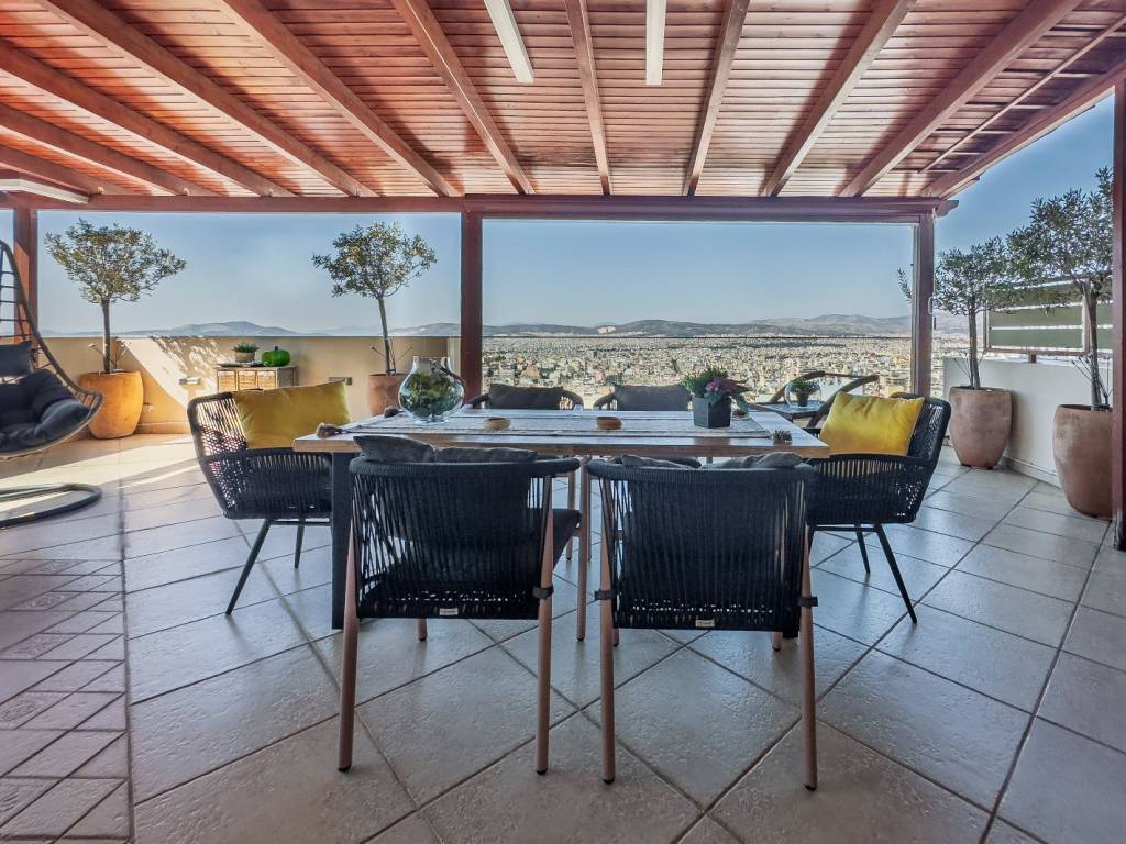 Πωλείται διαμέρισμα ρετιρέ 3ου ορόφου τελευταίου 165 τ. μ. , συν εσωτερικό πατάρι 8 , 5 τ. μ., κατασκεύης 2005 , περιοχή Ακτήμονες Γαλατσίου. Το διαμέρισμα βρίσκεται σε προνομιακή θέση κέντρο απόκεντρο σε απόλυτα ήσυχο σημείο 500 μέτρα από τη Λεωφόρο Γαλατσίου την αγορά και την καινούργια στάση μετρό και 400 μέτρα από την είσοδο στο πάρκο αναψυχής Βεΐκου, το οποίο είναι πνεύμονας πρασίνου για την περιοχή, ένω παράλληλα συδυάζει αθλητικές δραστηριότητες και σινεμά . Είναι προσόψεως διαμπερές με στεγασμένη βεράντα στο σαλόνι 60 τ. μ. , με πέργολα και ανοιγόμενα τζάμια, τζακούζι, νοτιοανατολικό προσανατολισμό και απεριόριστη θέα όλο το λεκανοπέδιο εώς τη θάλασσα ενώ δεύτερη βεράντα με ανατολικό προσανατολισμό έχει θέα στο Άλσος Βεΐκου. Είναι ολικά ανακαινισμένο το 2023 και θα παραδοθεί πλήρως επιπλωμένο και εξοπλισμένο με ηλεκτρικές συσκευές SIEMENS. Αποτελείται από μεγάλο χώρο υποδοχής, δεύτερο καθιστικό, τραπεζαρία, κουζίνα ανοιχτή σε εσοχή, δύο υπνοδωμάτια, το ένα master, με δυνατότητα τρίτου υπνοδωματίου στο dressing room, δύο πλήρη μπάνια και τρεις βεράντες. Διαθέτει αυτόνομη θέρμανση με πετρέλαιο, με αναμονές για σύνδεση με το φυσικό αέριο, τέσσερα air cοndition inverter, boiler, ηλιακό θερμοσίφωνα, τζάκι, τριπλά τζάμια, ξύλινα πατώματα στα υπνοδωμάτια, ηλεκτρικά στόρια στο σαλόνι, ηλεκτρικές τέντες, σίτες, συναγερμό και κάμερες εξωτερικά - εσωτερικά με καταγραφικό monitor και οθόνη στην πόρτα, πόρτα ασφαλείας με σφράγιση αέρα, get air σύστημα επτά θέσεων αερισμού, τζακούζι εξωτερικό έξι θέσεων, οπτικές ίνες, δύο θέσεις στάθμευσης μία σε κλειστό garaz 10 , 13 τ. μ. και μία στην πιλοτή 10 , 13 τ. μ. , αποθήκη 7 , 65 τ. μ. στο υπόγειο. Άριστη κατάσταση, άριστη διαρρύθμιση, εξαιρετική περιοχή. Τιμή 765. 000 ευρώ. Μεσιτικό γραφείο Kitties house, Μαρούσι. Σύμβουλος πωλήσεων Λουραντάκη Αργυρώ. Τηλέφωνα επικοινωνίας 217 7007190 κιν. 6973561817. kitttieshouse. gr. Δεκτή η συνεργασία με μεσιτικά γραφεία. FOR SALE: Penthouse apartment on the 3rd (last) floor, area of 165 sq.m., plus an internal loft of 8.5 sq.m., built in 2005, in the area of Aktimones, Galatsi. The apartment is located in a privileged location, close to the city centre but also in a very quiet area, about 500 meters from Galatsiou Avenue, the market district and the new metro station. It has an airy façade with a covered terrace outside the living room of 60 sq.m., with a pergola and opening windows and a jacuzzi. It is oriented towards the southeast and has unobstructed views of the entire Attica region and even the sea. A second, eastern veranda has a view of the Veikou Park. It was fully renovated in 2023 and will be delivered fully furnished and equipped with Siemens appliances. It consists of a large reception area, a second living room, a dining room, an open kitchen, two bedrooms (one of which is the master bedroom), a dressing room (which can be turned into a third bedroom), two complete bathrooms and a total of three verandas. It offers autonomous heating with fuel oil, a connection in waiting for natural gas, four air conditioning inverters, a boiler, a solar water heater, a fireplace, wooden floors in the bedrooms, triple-glass balcony doors, electric blinds in the living room, screen doors, electric sunshades, an alarm and outdoors/indoors cameras with a recording monitor and screen beside the door. The door is secure with air seal, get-air system of seven ventilation positions, an outdoor jacuzzi of six seats, fiber-optic phone connection, two parking spots (one of which in a closed garage of 10.13 sq.m. and the other in the open-space garage of 10.13 sq.m. and a storage room of 7.65 sq.m. in the basement. It is of excellent condition and layout and located in an outstanding area. Price 765.000 EUR. Real estate agency: Kitties house, Konitsis 15, Maroussi. Sales Consultant Lourantaki Argyro. Contact number 217 7007190, mobile 6973561817. kitttieshouse.gr.