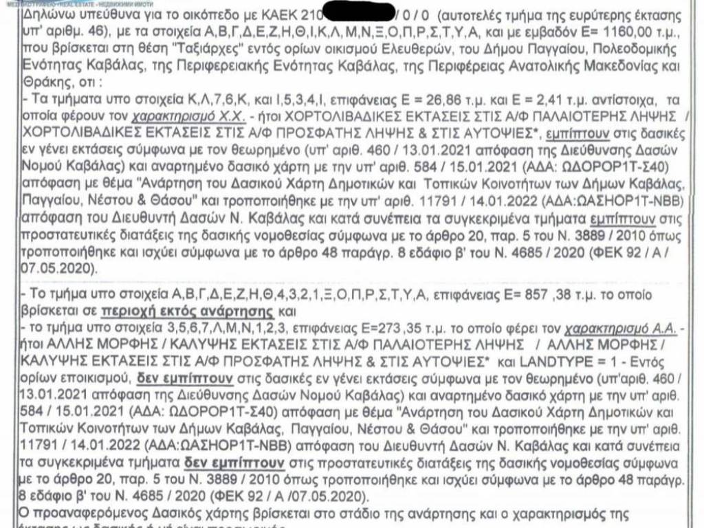 Prefecture of Kavalas, Eleftheres: Amphitheater Plot of 1100 sq.m. for sale. with a building factor of 0.60, height factor of 7.5m.