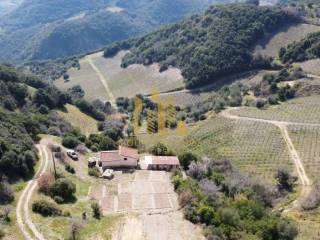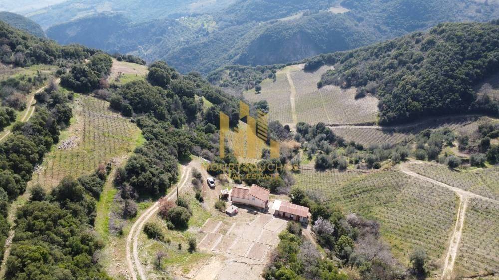 The property includes three outdoor parking spaces and has an energy class H. The extensive 16,000 sq.m. land offers excellent opportunities for cultivation, agricultural activities or the creation of a private rural estate surrounded by vineyards and mountainous scenery.