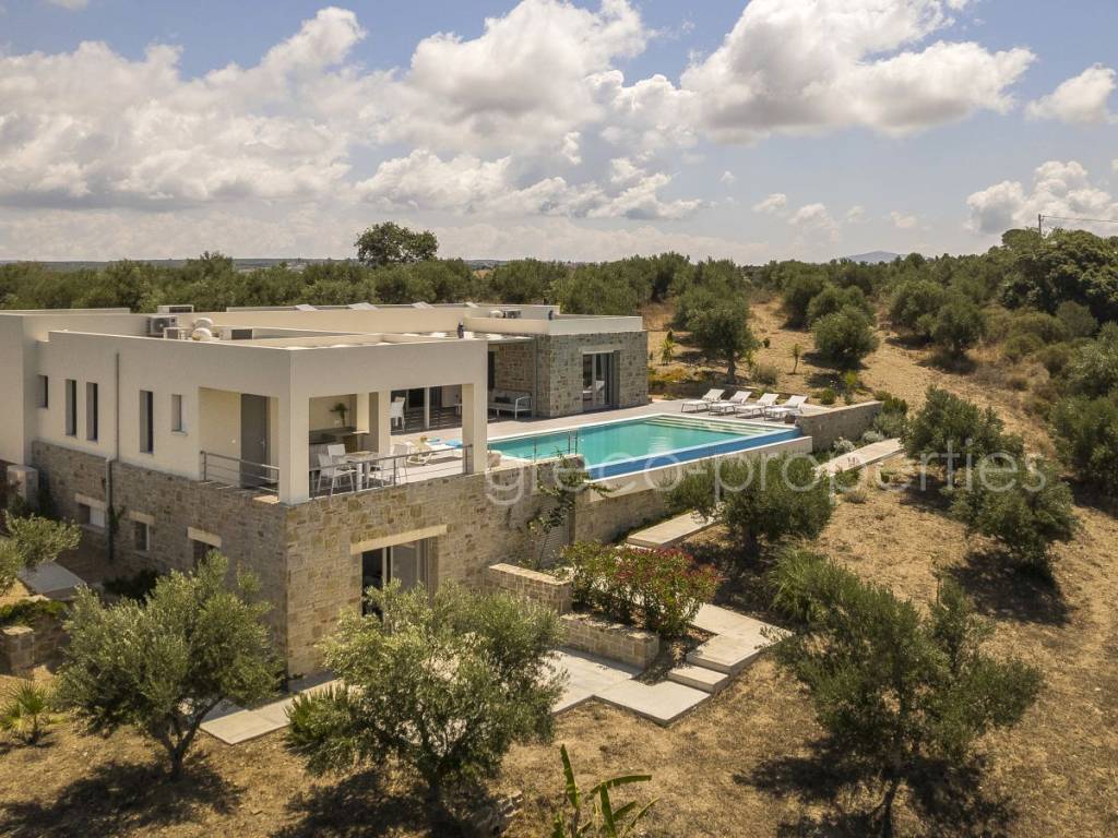 VILLA CASTLE VIEW III – New building with infinity pool and apartment, sea view Hidden among expansive olive groves lies a contemporary newly built villa where modern architecture blends seamlessly with Mediterranean nature. Warm earth‑toned walls and natural stone accents echo the region’s timeless building traditions. Upon entering the 5,000 sqm property, the view opens to the shimmering sea and the Venetian fortress, recently used as a filming location for the Hollywood production *Odyssey*. Evenings are particularly magical as the sunset bathes the landscape and the villa in golden and amber hues. At the heart of the outdoor area is a generous infinity pool, surrounded by terraces with shaded pergolas and an outdoor barbecue kitchen. These spaces invite relaxation, al fresco dining, or quiet moments beneath ancient olive trees. The villa spans two levels and offers four bedrooms, each with a walk‑in wardrobe and en‑suite bathroom. Large panoramic windows bring light and nature indoors. The interior design follows a clean, modern aesthetic with natural materials, subtle colours, and high‑quality finishes. A separate guest apartment with its own entrance provides additional space, while the discreetly integrated garage complements the villa’s contemporary character. The villa comes fully furnished and equipped with modern comforts, including air‑conditioning via fan‑coil units and underfloor heating powered by an air‑to‑water heat pump, which is also connected to the rooftop photovoltaic system. A large infinity pool forms the centerpiece of the outdoor area, while the landscaped garden features a 1.60‑meter mesh fence, a wide concrete pathway surrounding the house, a paved parking area, and an automated irrigation system. Aluminum pergolas provide shaded outdoor living spaces, and the property is pre‑wired for a security alarm system. Every detail has been designed for convenience, efficiency, and year‑round comfort. Just a short drive away lie the award‑winning golf and wellness resorts of Costa Navarino, featuring renowned championship courses set within spectacular coastal scenery—an ideal setting for golf enthusiasts or those eager to become one. The newly built villa “Castle View III” is located near the historic town of Methoni, with Pylos and Koroni just 10–20 minutes away. The region and its mountain villages have preserved their authentic Greek character, while world‑class luxury lies only a short drive off. Costa Navarino, with its renowned wellness resorts, golf courses, and more than 70 restaurants and shops, is just 15–20 minutes from the property. In recent years, major investments have transformed Messenia into one of the Mediterranean’s leading luxury and holiday destinations, with four golf courses and multiple high‑end resorts. Further growth is expected: the privatization of Kalamata International Airport (55 km), the expansion of the Pylos marina, and the new highway connecting Kalamata and Methoni are all underway. A new leisure destination, the Minagiotiko reservoir, will also be developed just 10 km from the villa. Mykonos is out — Costa Navarino is rising! Kalamata Airport is being upgraded between 2026 and 2030, the Athens highway is being extended, and the Pylos marina has recently been leased to private investors. All information is provided by the seller. The broker assumes no liability for completeness or accuracy. The general terms and conditions apply and can be viewed at any time. The brokerage fee amounts to 3.72% including VAT and covers the organization of the contractual process. Statutory ancillary purchase costs for property transfer tax, notary, legal services, and land registry currently amount to approximately 7.5%. Energy Performance Certificate (PEA) available. Subject to prior sale.
