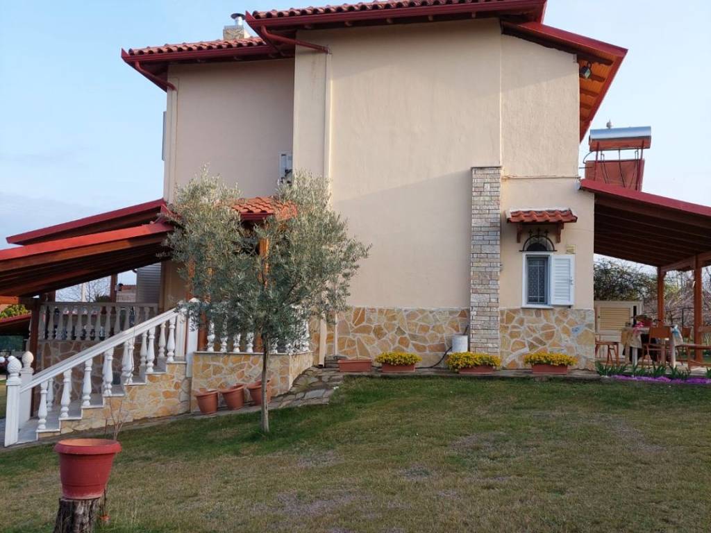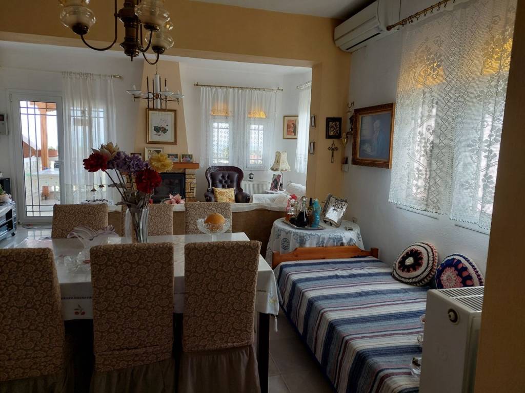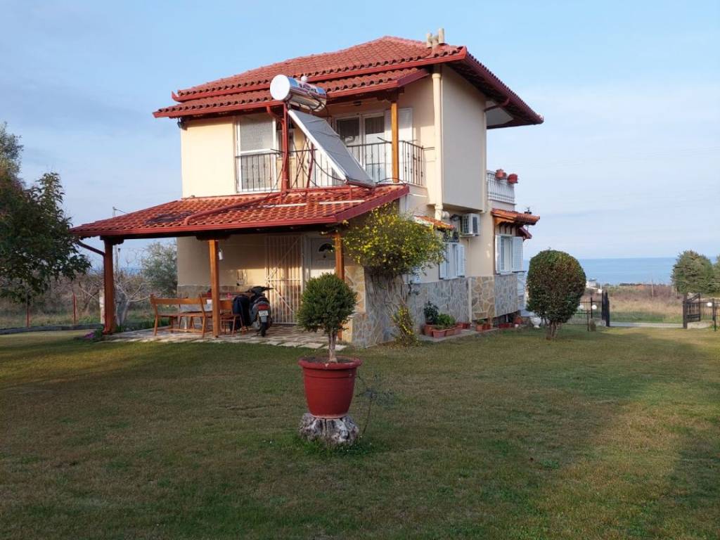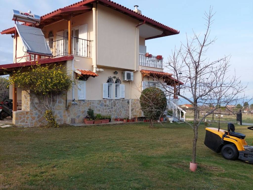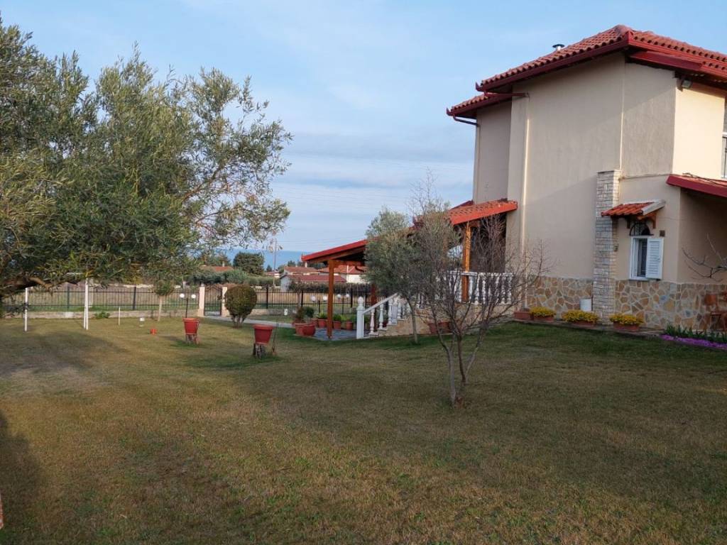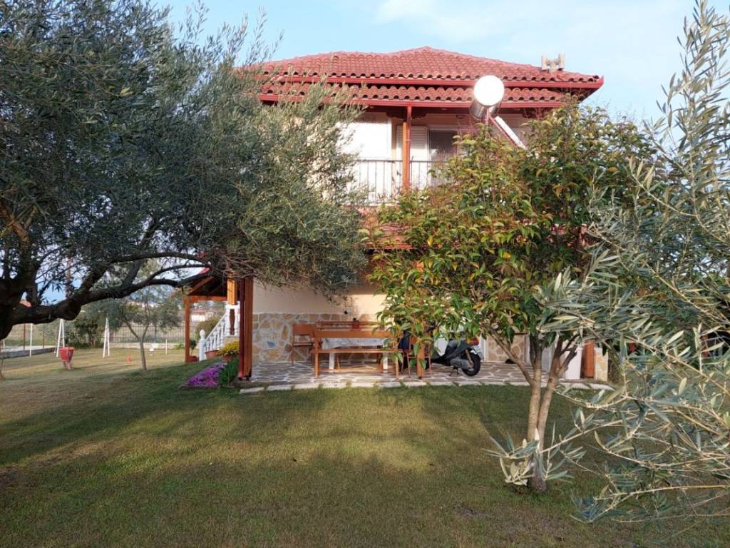 Detached House For Sale, floor: Semi-basement, Ground floor, 1st (3 Levels), in the area: Litochoro - Plaka. The area of the property is 100 sq.m. and is located on a plot of 1,500 sq.m.. It consists of: 3 Bedrooms, 2 bathrooms, 2 kitchens, 1 living room, and has 5 parking spaces (5 in open space). It was built in 1990. The heating of the property is Autonomous with Oil, while Air Conditioning, Solar is also available, energy certificate: D and the floors are: Tiles. Its condition is: Amazing, it has a Sea view, Open, Unobstructed and it has an East orientation. The property is Furnished, Frontage, Bright, Airy, Sunny, Airy, Seaside, Ground floor residence, Luxurious, is suitable for a Holiday home and also has the following features and advantages: Electric Appliances, Storage Room, Internal staircase, Garden, BBQ, Automatic Irrigation, Lawn, Trees, Pets Allowed, Quiet neighborhood, Borehole, Terrace, Internal courtyard. For sale is a unique maisonette of 100 sq.m. on a plot of 1,500 sq.m. in Plaka Litochorou (Pieria Prefecture), with an internal staircase and three levels (semi-basement, ground floor and 1st floor). It consists of 3 bedrooms, 2 kitchens, 2 bathrooms and 1 living room. It has autonomous oil heating, fireplace, air conditioning, solar water heater, storage room, BBQ, alarm and is fully furnished. In the outdoor areas you will find 5 covered parking spaces, a terrace, a beautifully landscaped garden with an automatic irrigation system, lawn, olive and fruit trees, as well as a borehole with plenty of water. The house is clad in stone all around, has an insulated tiled roof for coolness in the summer and offers excellent, unobstructed views. It is ready for immediate occupation without any additional costs.