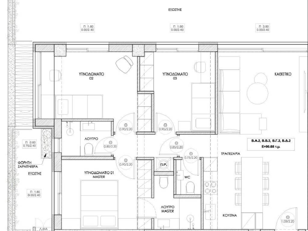 Χαλκίδα, Διαμέρισμα 1ου ορόφου 91τμ κατασκευής 2026, Ενεργειακής απόδοσης Α+ Αποτελείται από ενιαία κουζίνα-τραπεζαρία και σαλόνι, τρία ευρύχωρα υπνοδωμάτια με ντουλάπες και το ένα master με δικό του μπάνιο, ενεργειακά κουφώματα αλουμινίου με διπλά τζάμια, σίτες, θερμοπρόσοψη, αναμονές για ηλιακό θερμοσίφωνα, μεγάλες βεράντες, αποθήκη υπογείου, parking υπόγειο, σε απόσταση από θάλασσα 600 μέτρα, δίπλα σε στάση λεωφορείου και super market.