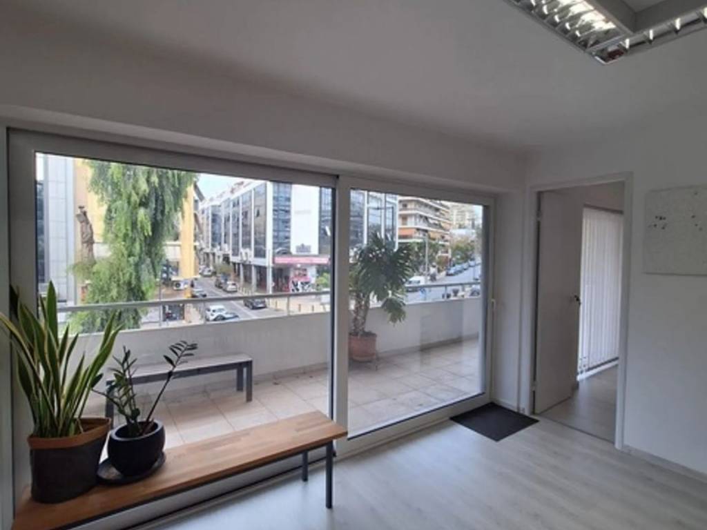 Γωνιακό Ανελκυστήρας Κουφώματα αλουμινίου ιδιαίτερης προβολής και σύγχρονης αισθητικής, διατίθεται επαγγελματικός χώρος ο οποίος αναπτύσσεται σε τρία επίπεδα : Ισόγειο 12 τ.μ., Ημιώροφος 49 τ.μ., όροφος 91 τ.μ. Tα τρια επίπεδα διασυνδέονται με ευθύγραμμες σκάλες. Στον όροφο όλοι οι εσωτερικοί χώροι ανοίγονται σε περιμετρικούς άνετους εξώστες. Χώρος όμορφος και ιδιαίτερα φωτεινός. Θέρμανση με inverter κλιματιστικά. Ιδανική η χρήση του ως φροντιστήριο